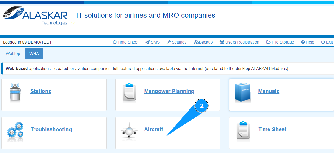 1. In order to add an aircraft, go to the tab "WBA".