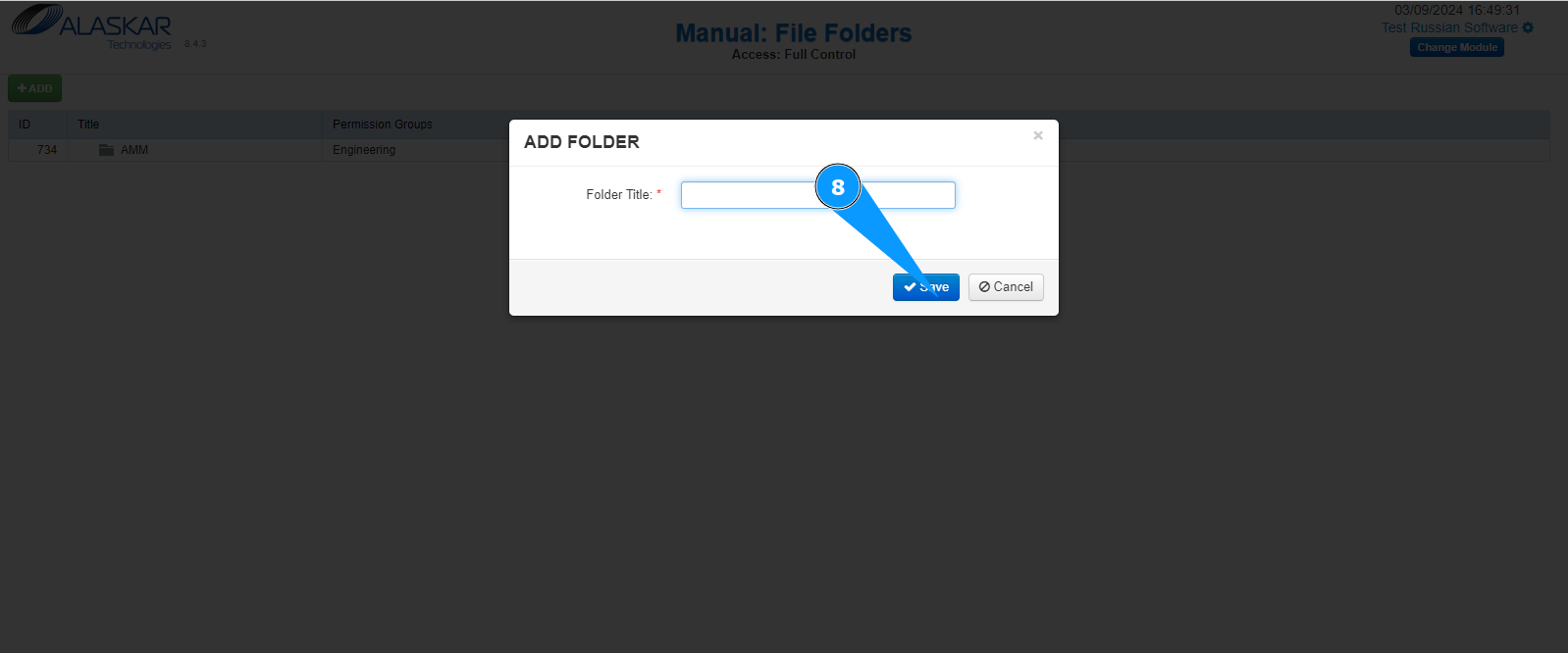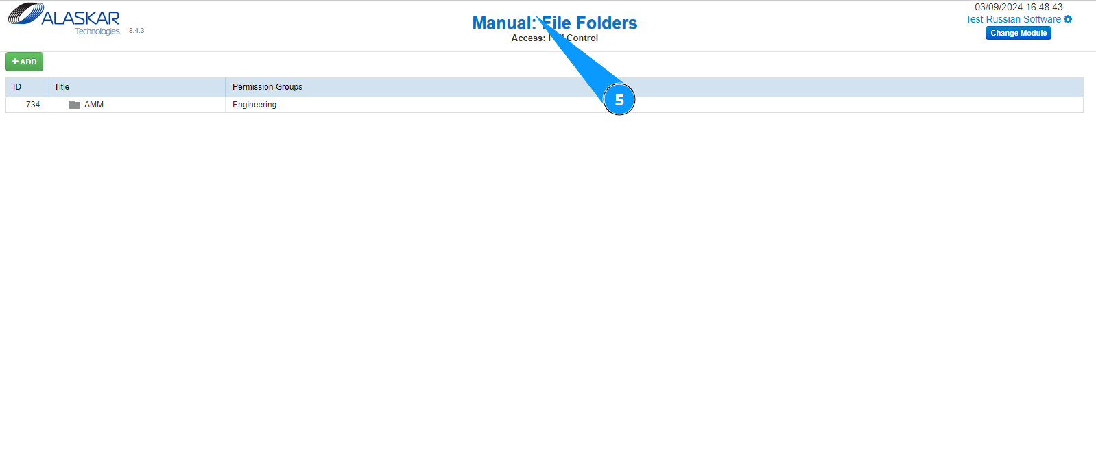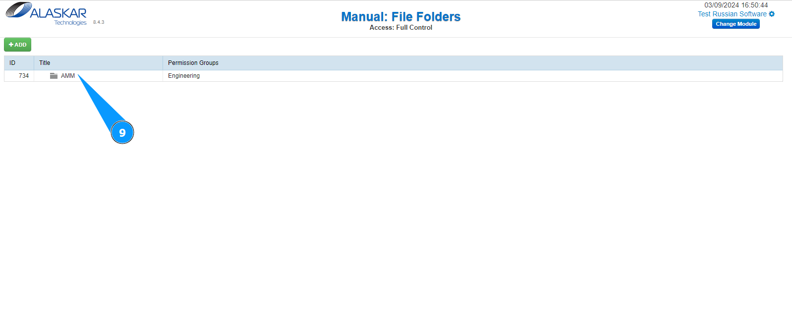 9. Check that the newly created manual is displayed in the window "Manual: File Folders".