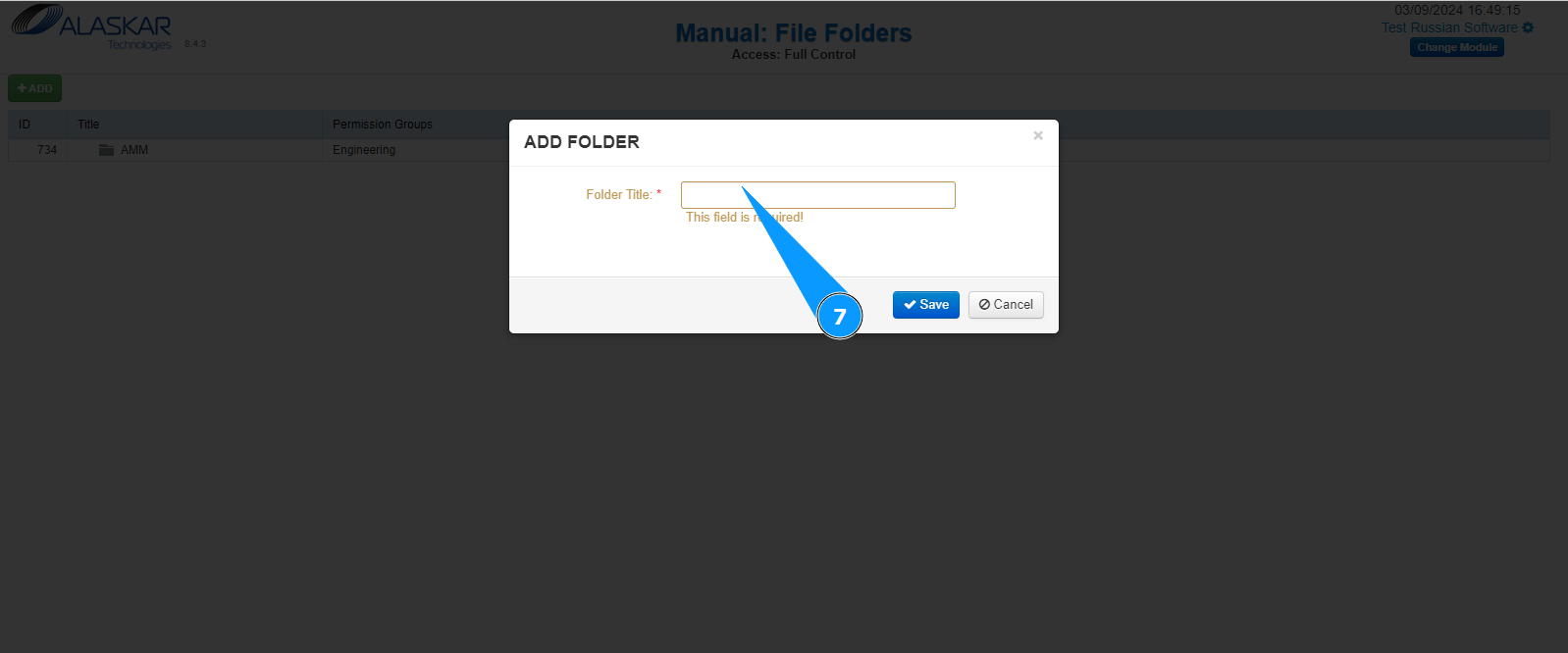 5. Check that the manual creation editor has opened and is available in the window "Manual: File Folders".