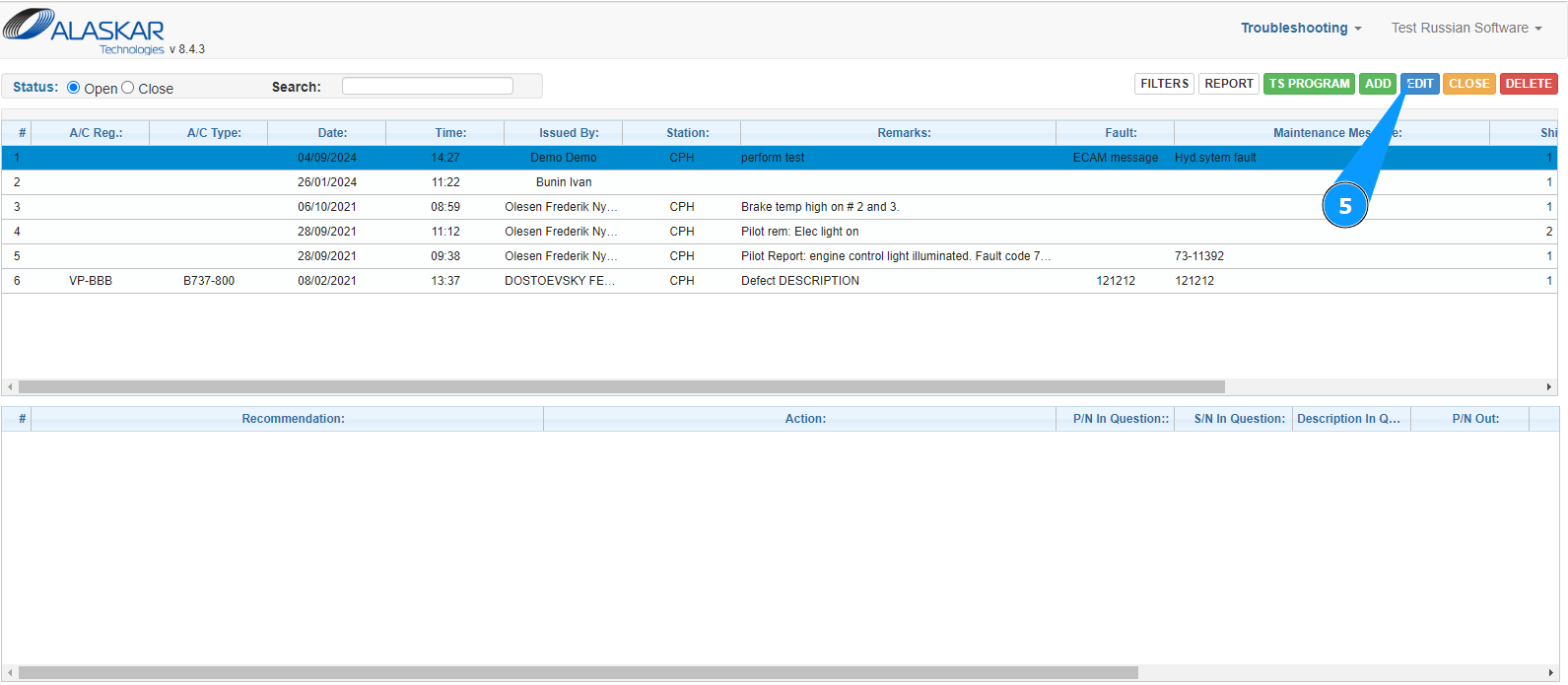 5. Click on the button "Edit" to enter the troubleshooting card action adding mode.
