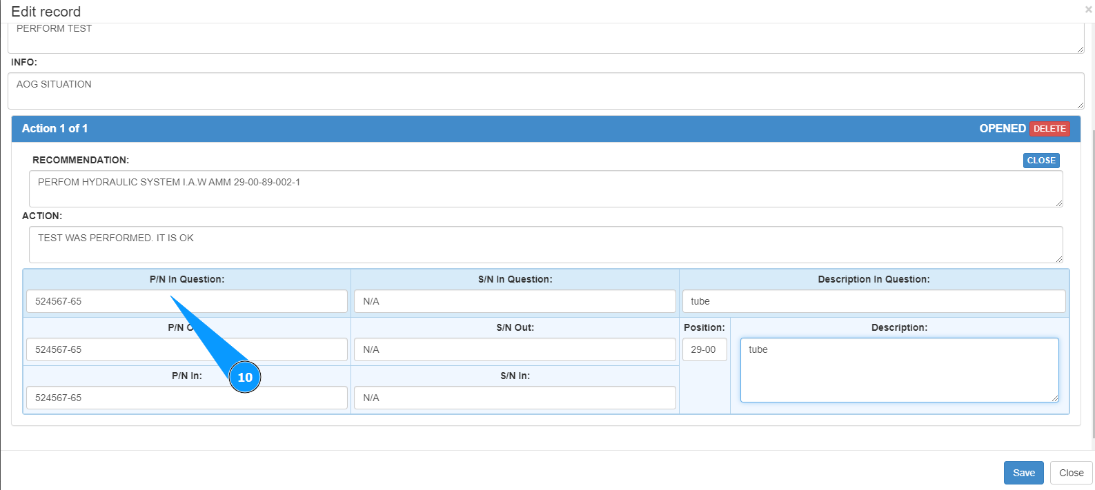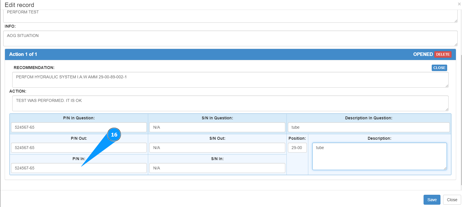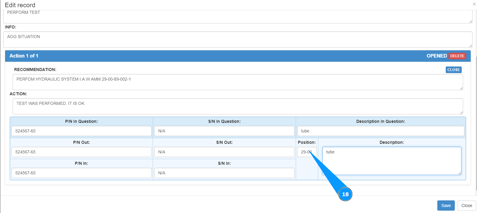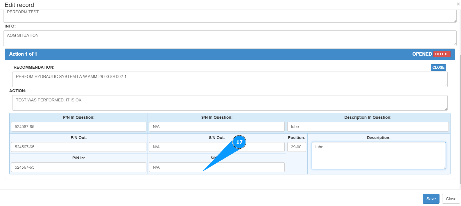 20. If the work has actually been fully completed for this action step, click on the button "Close" to close this step in the troubleshooting card.