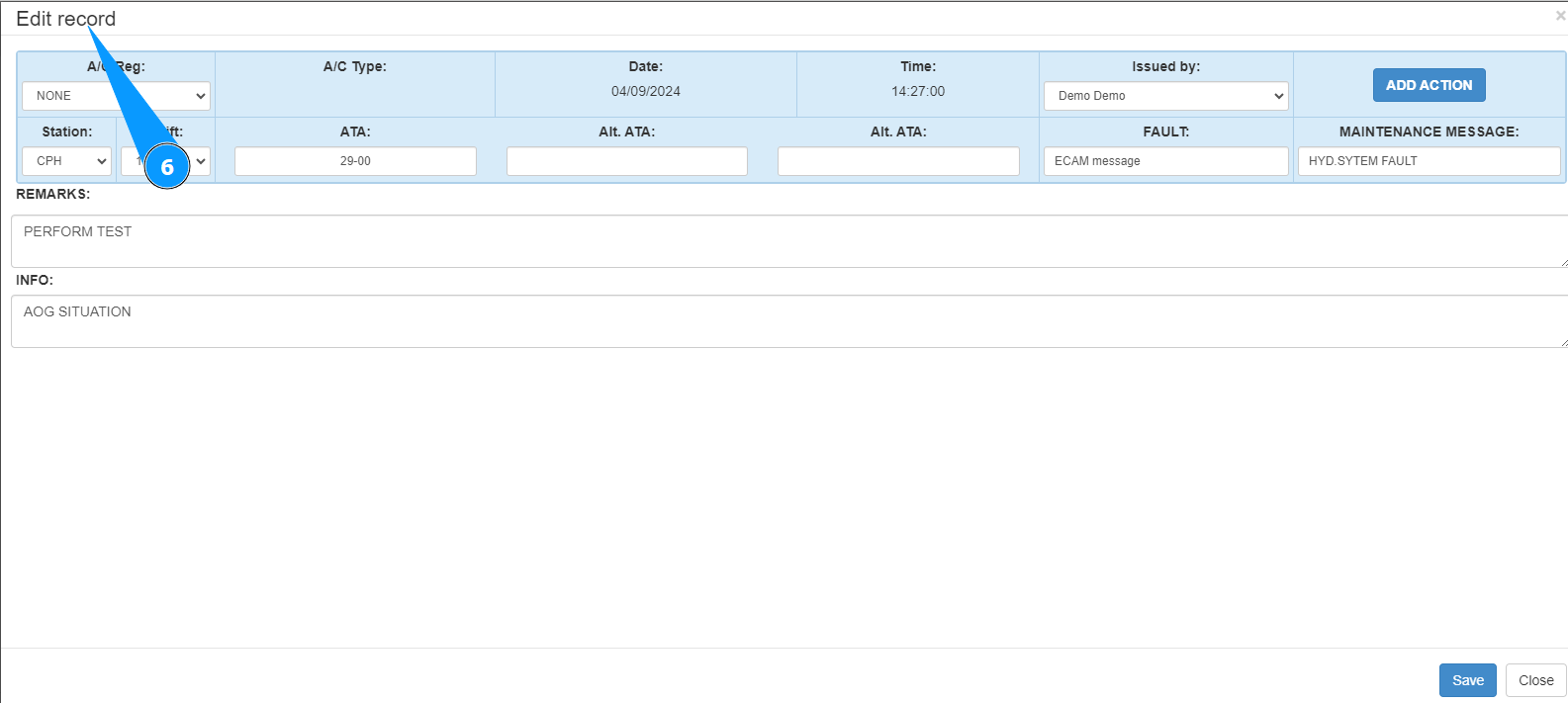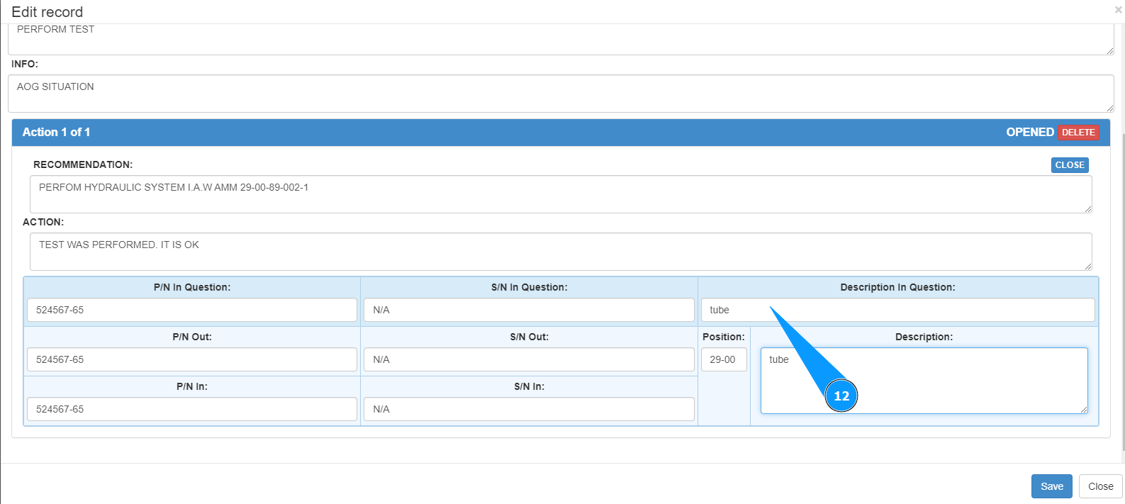 6. Check that the troubleshooting card editor has opened and is available in the window "Edit Record".