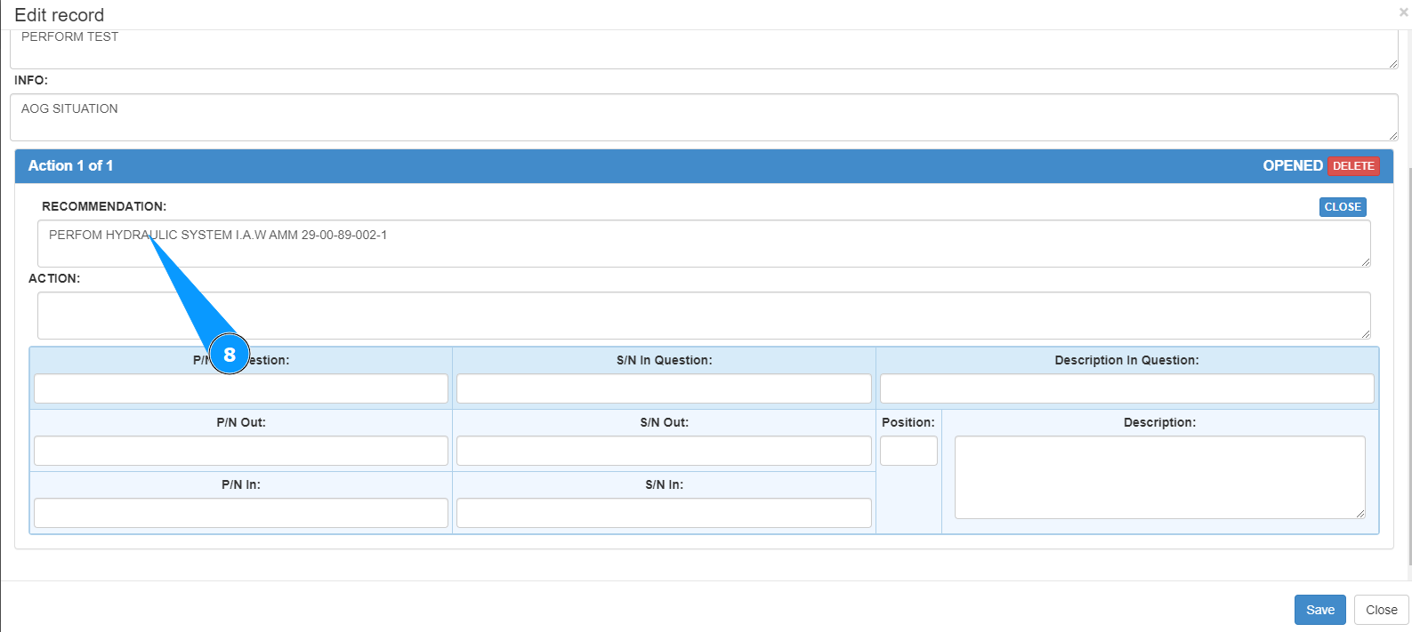 8. Enter the required troubleshooting recommendations in the field "Recommendation".