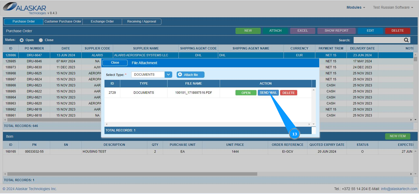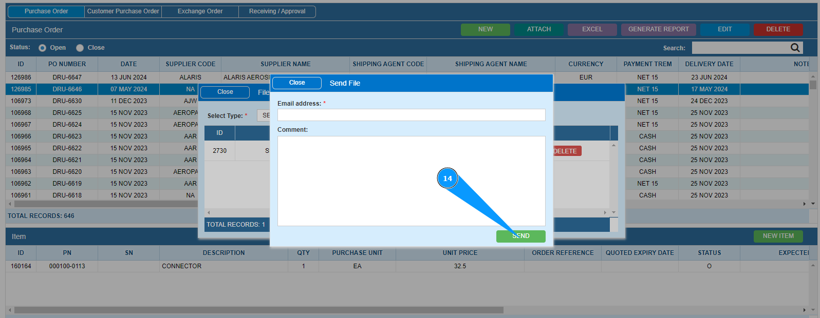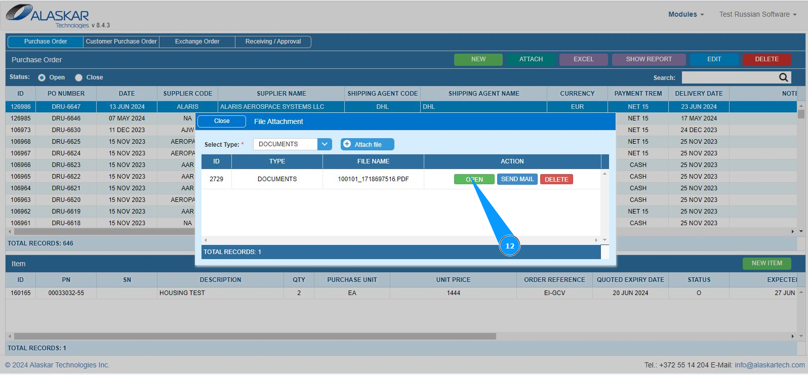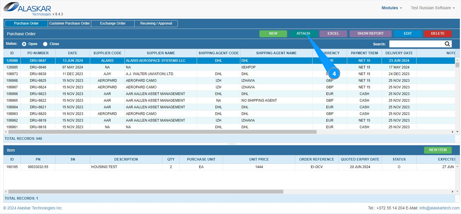2. Make sure that the window for working with PO is open and accessible in the window "Purchase order".
