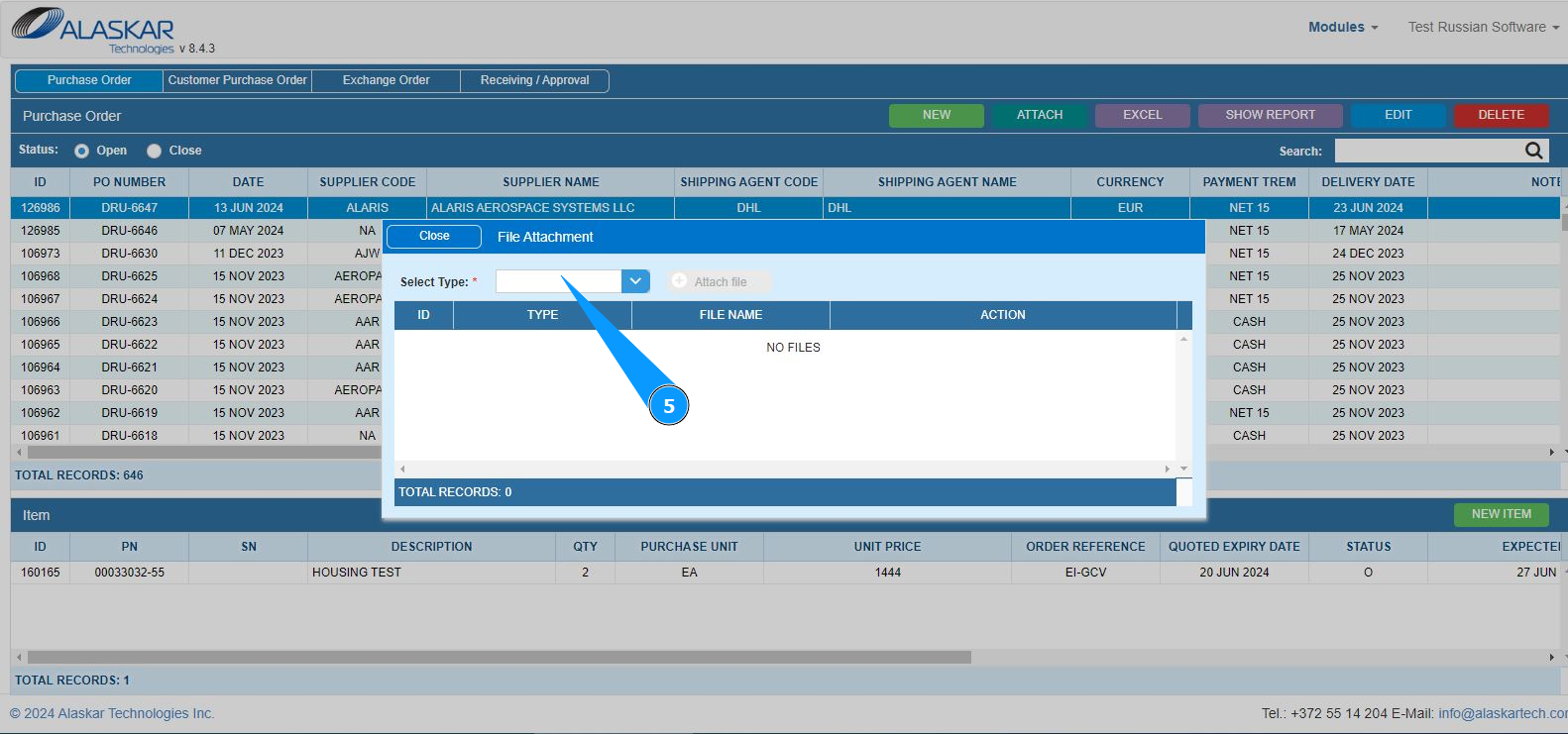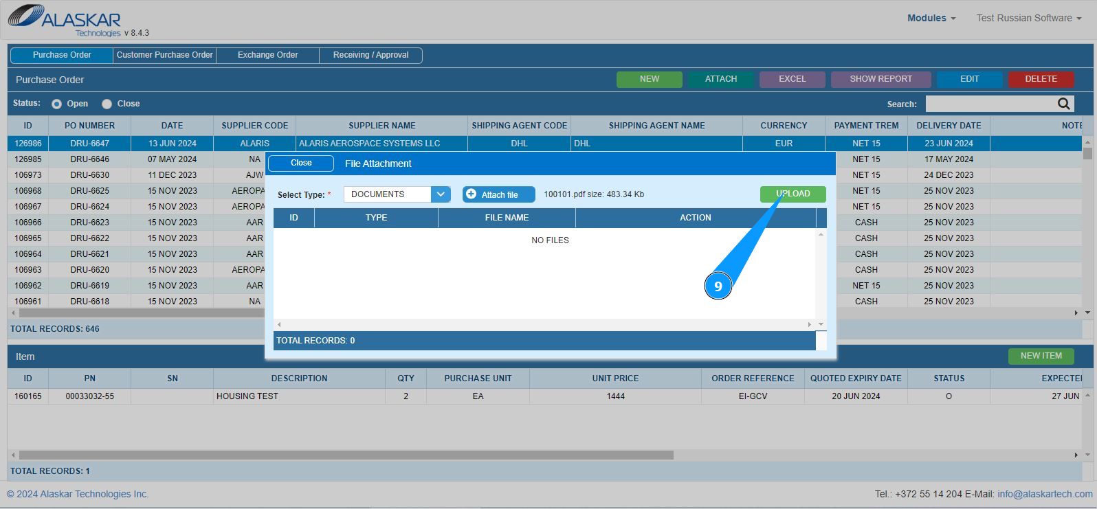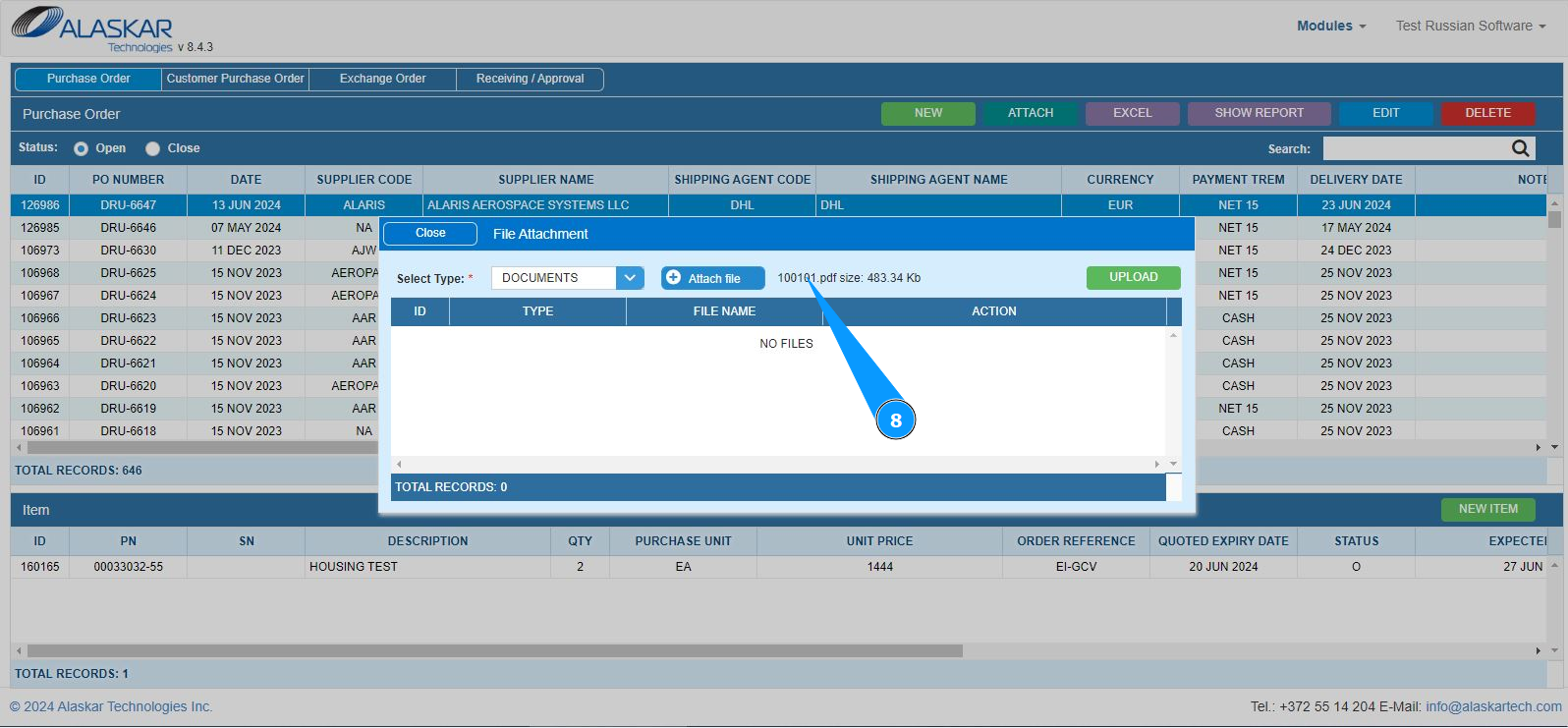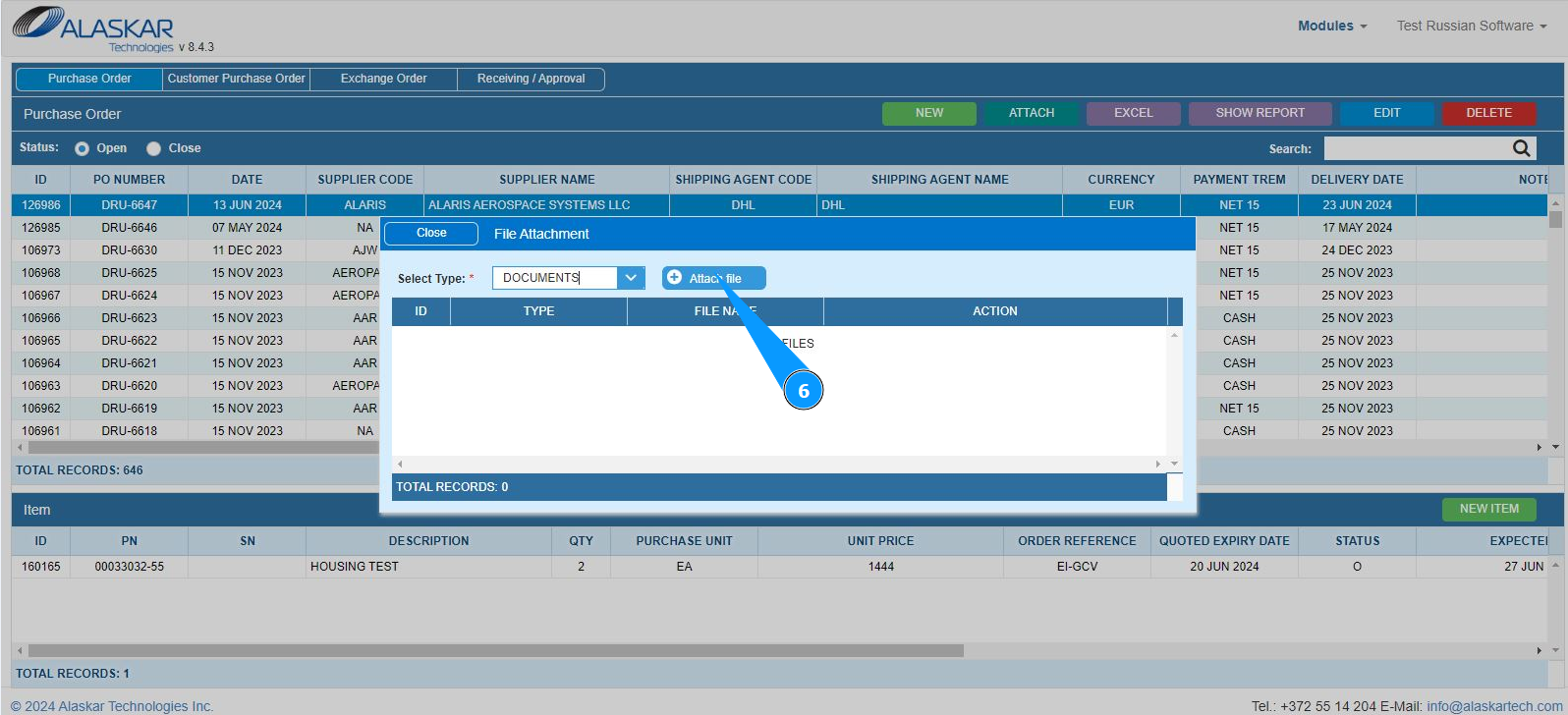 1. In order to attach a document to a Purchase Order, go to the submodule "Purchase order Receiving-Approval".