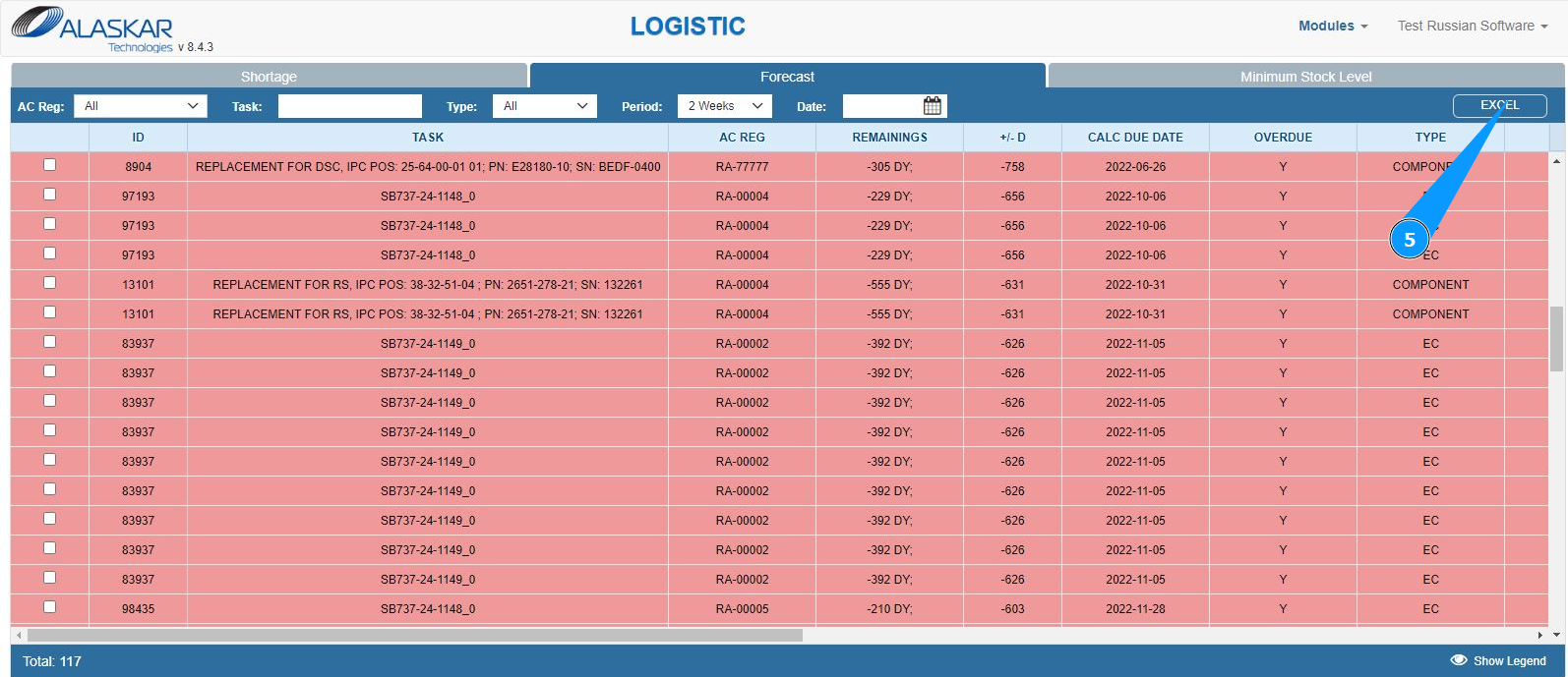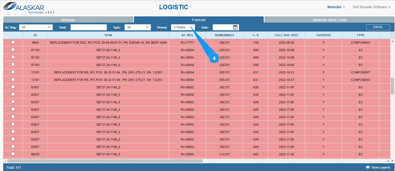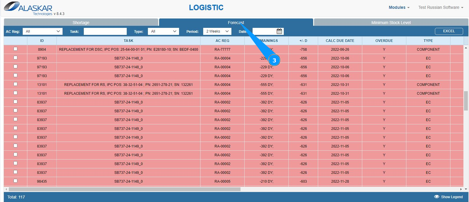 1. In order to check the forecast of materials for a period, go to the submodule "Logistic".