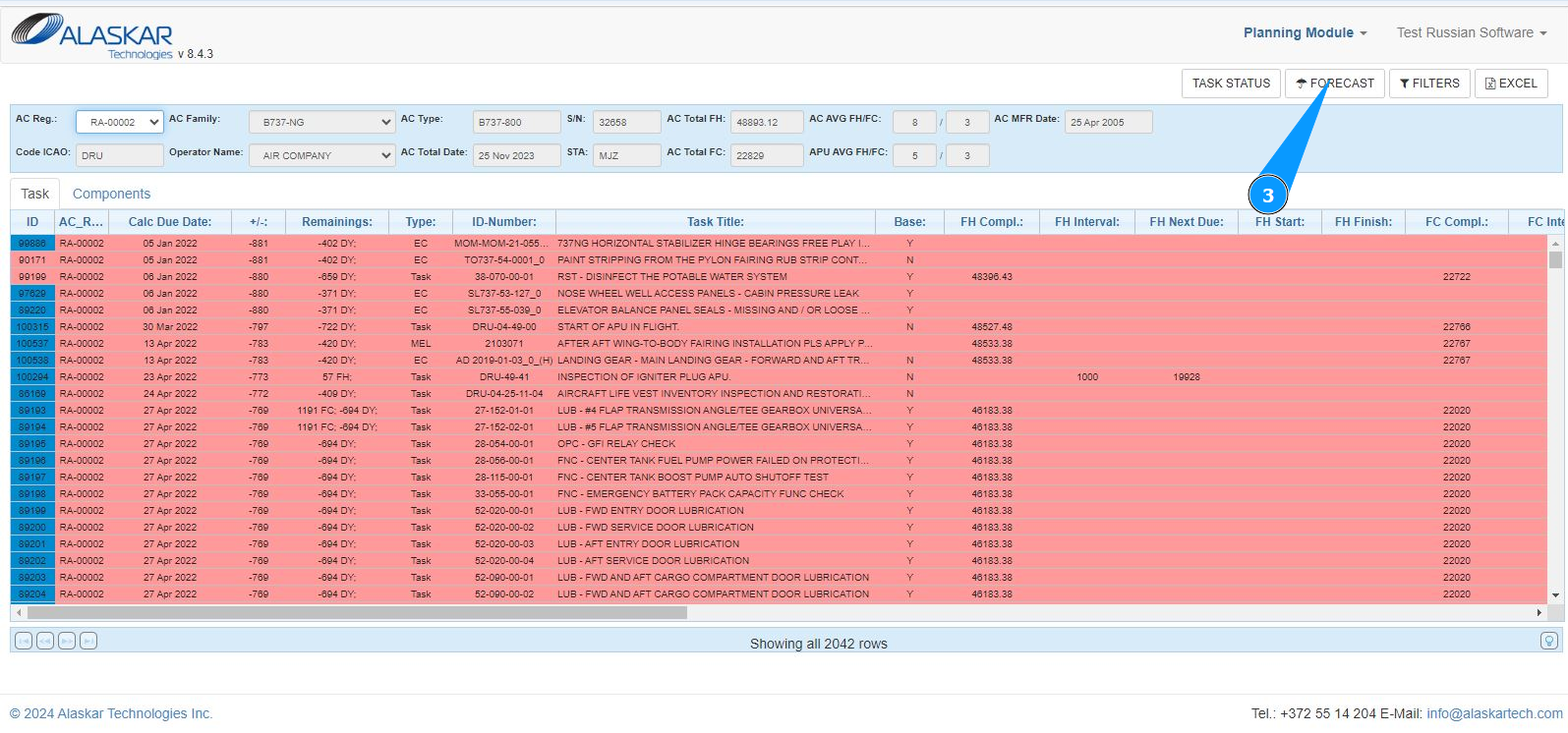 2. Select the aircraft registration number from the dropdown list in the field "AC Reg.".