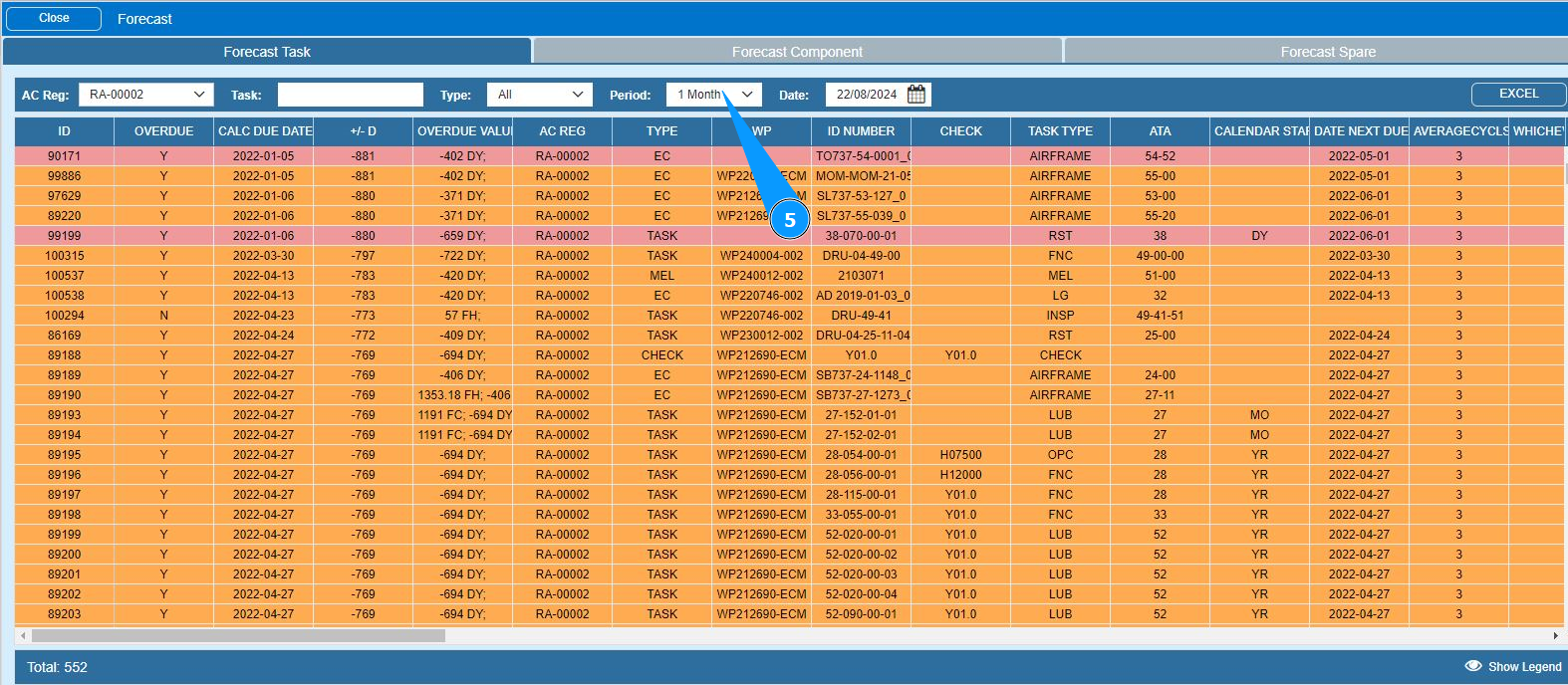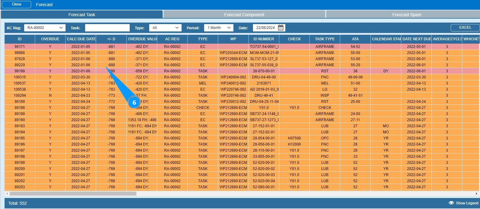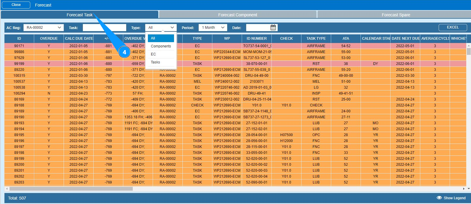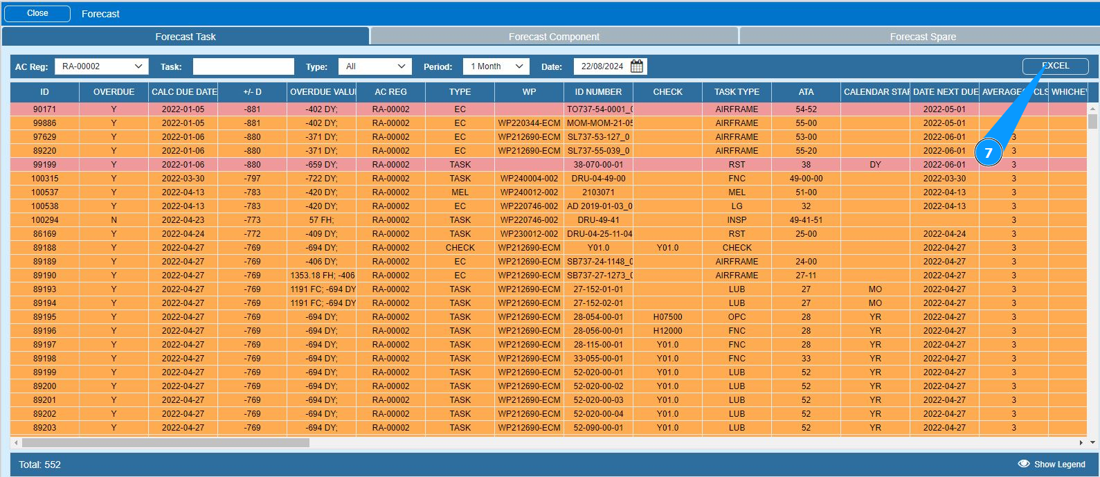 7. If necessary, download the forecast of components in Excel format and click on the button "Excel".