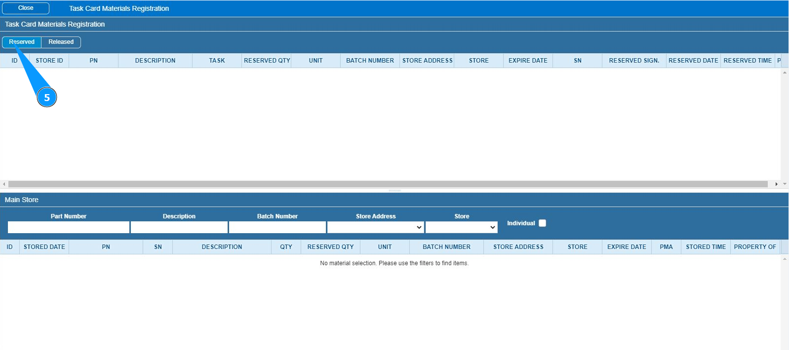 5. Information about the list of reserved materials for completing the task must be obtained in the tab "Reserved".