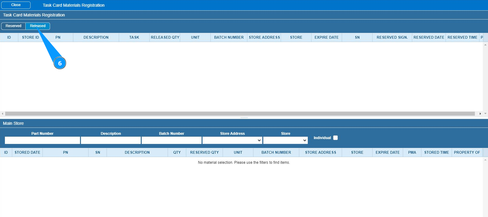 6. For receiving information about the list of materials released to complete the task, you can see on the tab "Released".