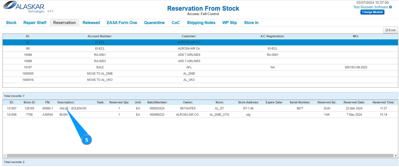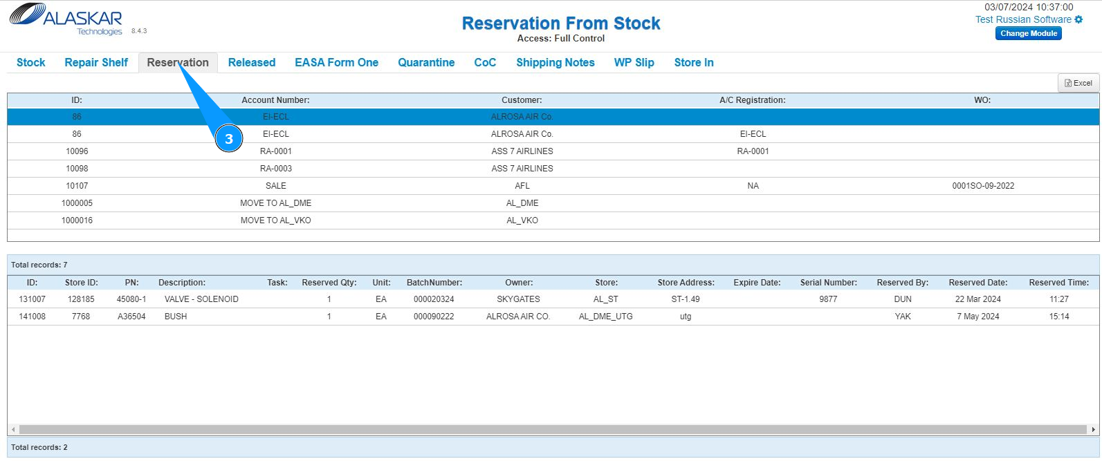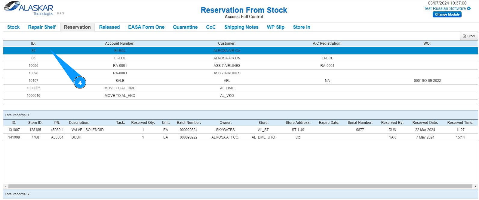 5. Check that information about the required reservation is displayed in the lower window of your screen.