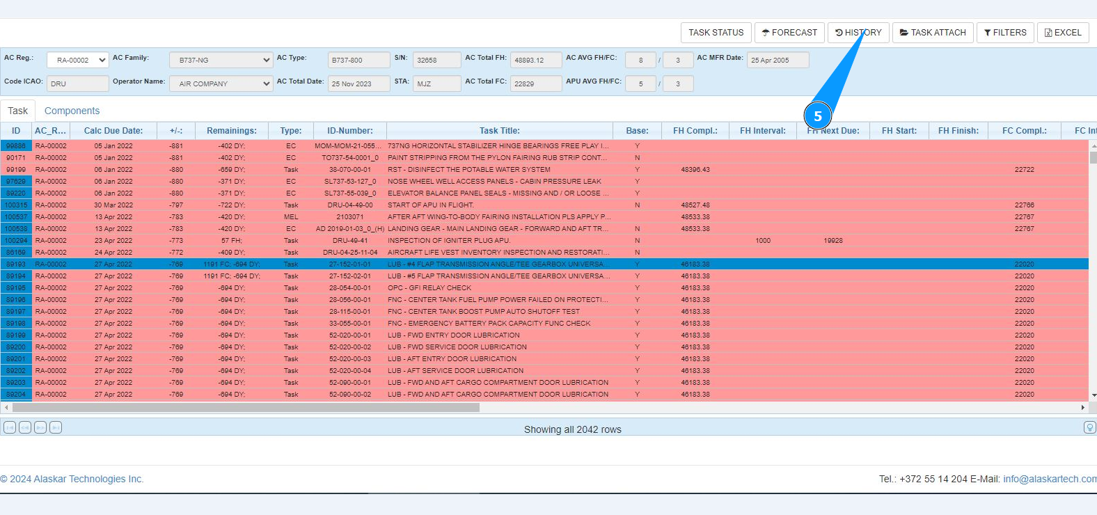 2. Select the aircraft registration number from the dropdown list in the field "AC Reg.".