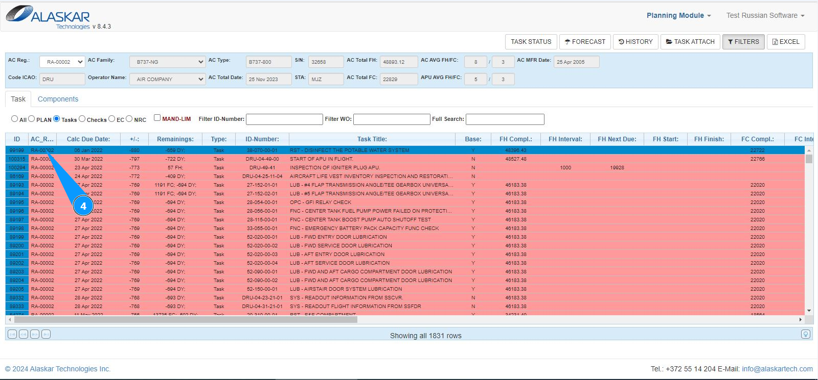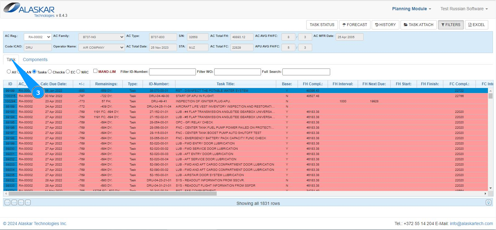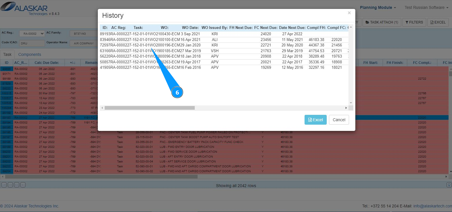 1. In order to check the performed task history, go to the submodule "Planning Module".