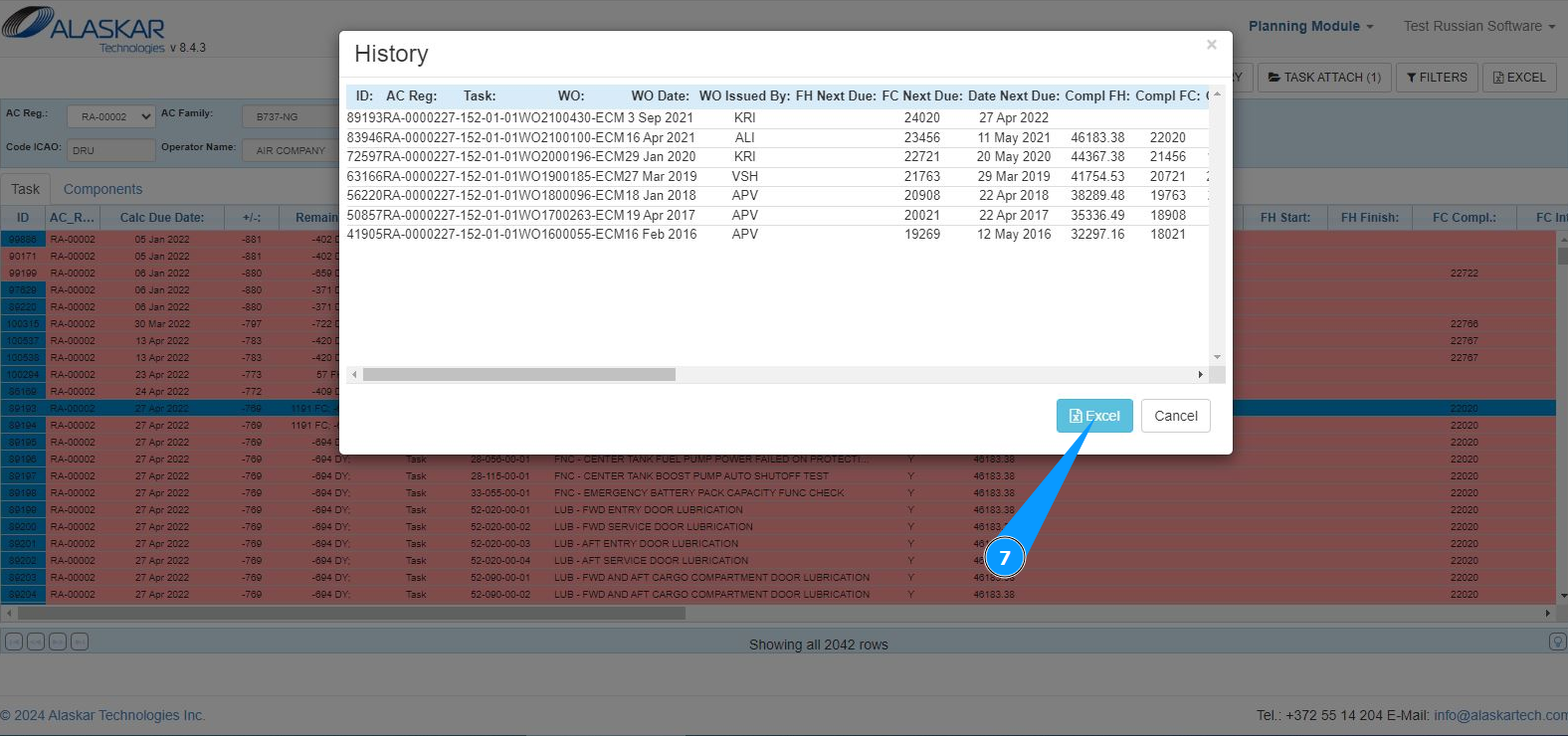 7. If necessary, you can download the history in Excel format. Click on the button "Excel".