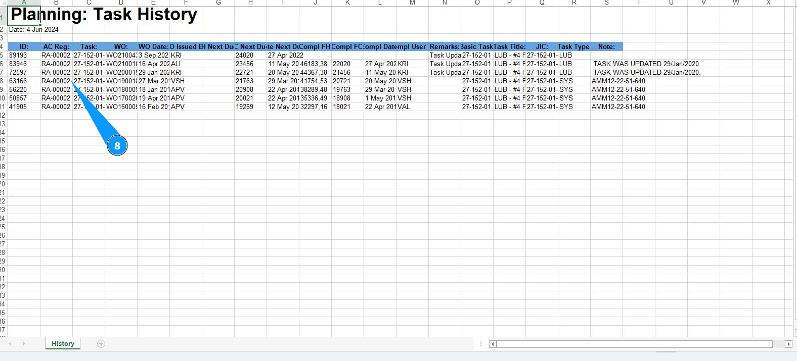 8. Check that the required report is generated and displayed with the task status "Planning: Task History".