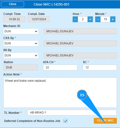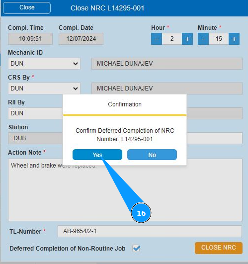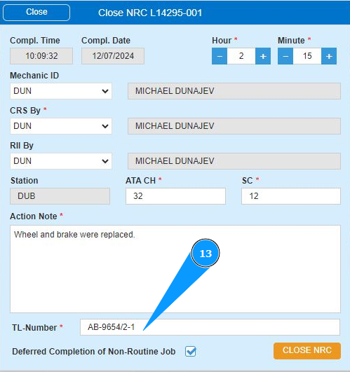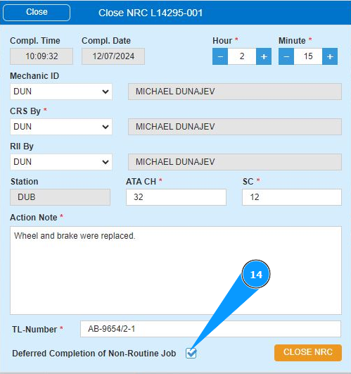 14. If you need to mark the NRC as deferred job, tick the box: "Deferred Completion of Non-Routine Job".
