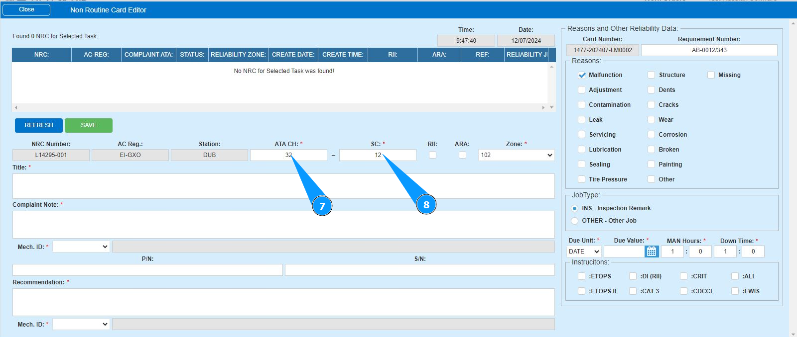 8. Enter data on the ATA subchapter number in the field "ATA SC".
