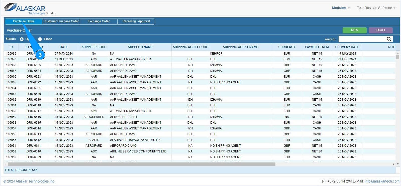 2. Make sure that the window for working with PO is open and accessible in the window "Purchase order".
