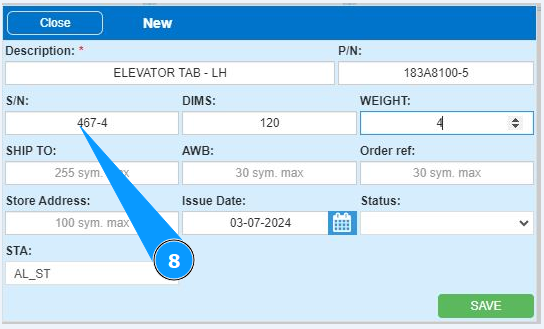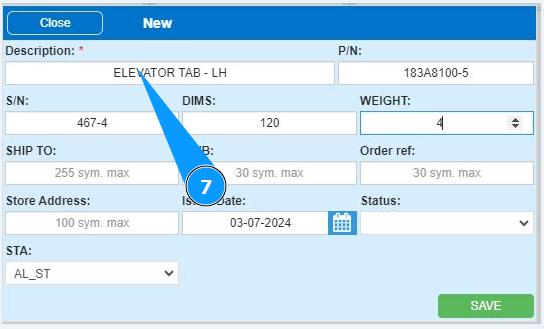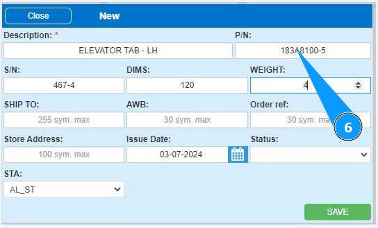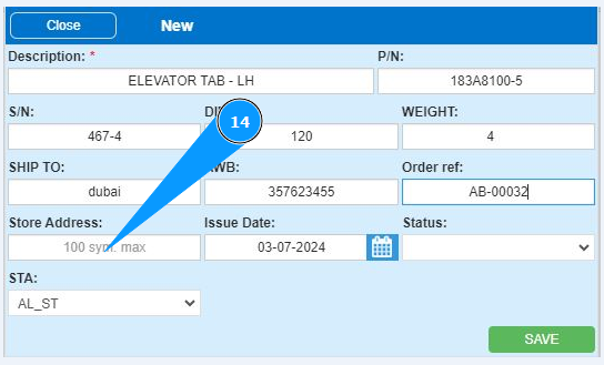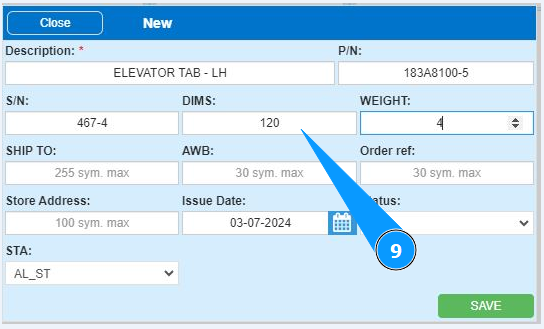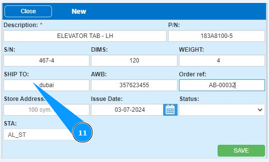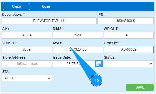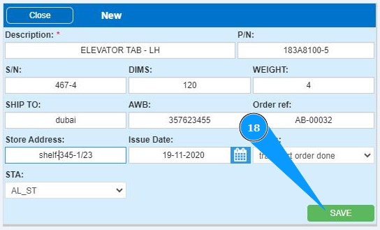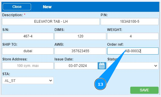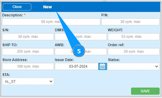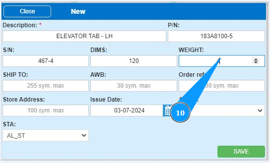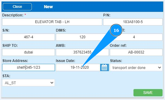 16. Enter the date you entered the shipping details in the field "Issue Date" or select from the calendar.