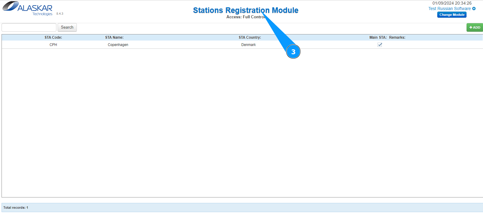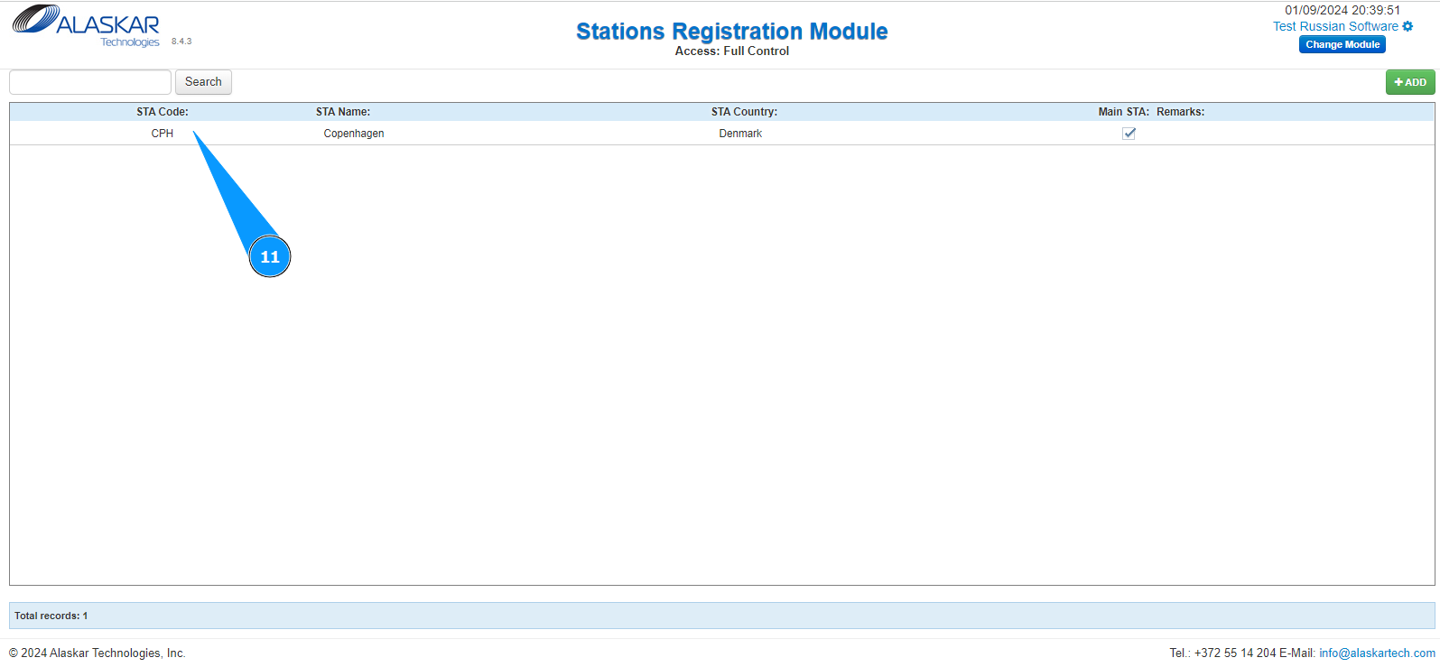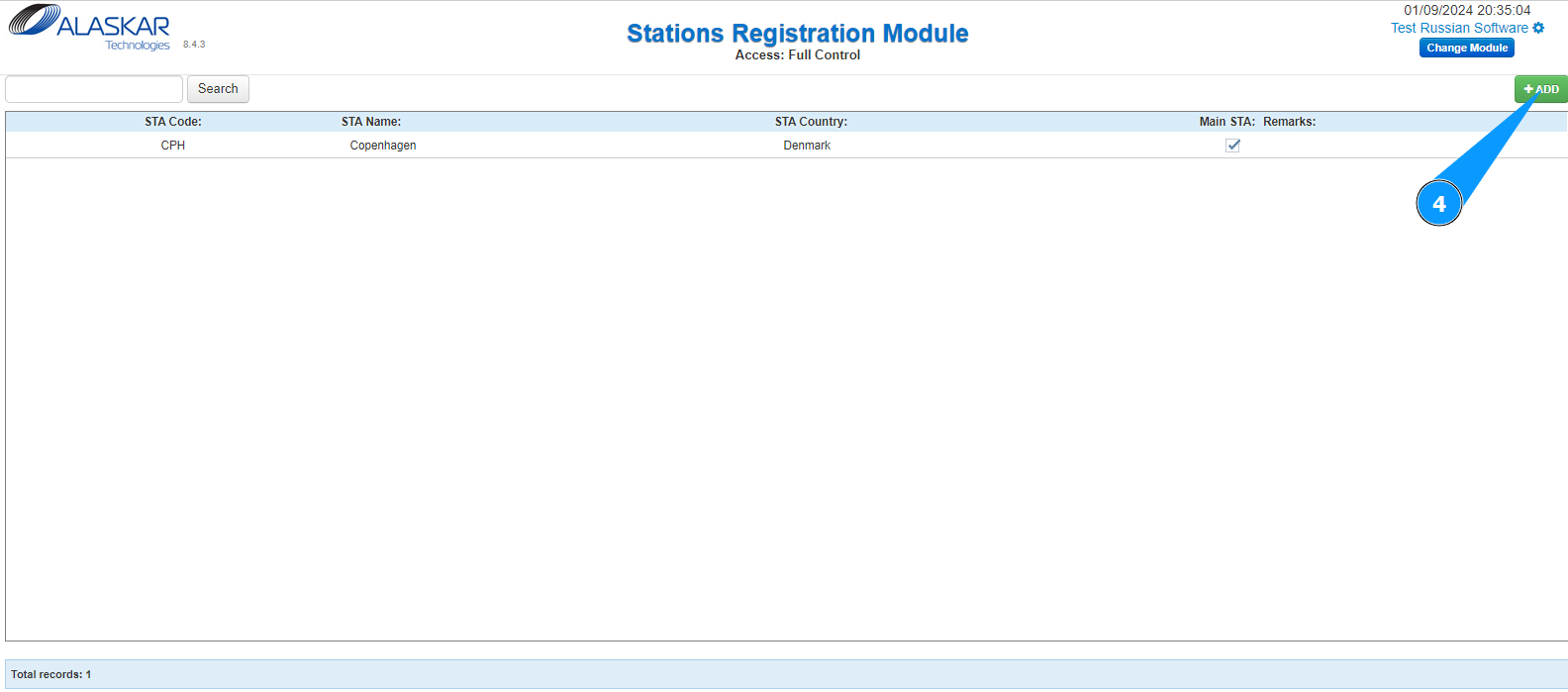 11. Check that the newly created station is displayed in the window "Stations Registration Module".