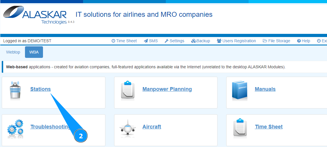 1. In order to create a work location or a line station, go to the tab "WBA".
