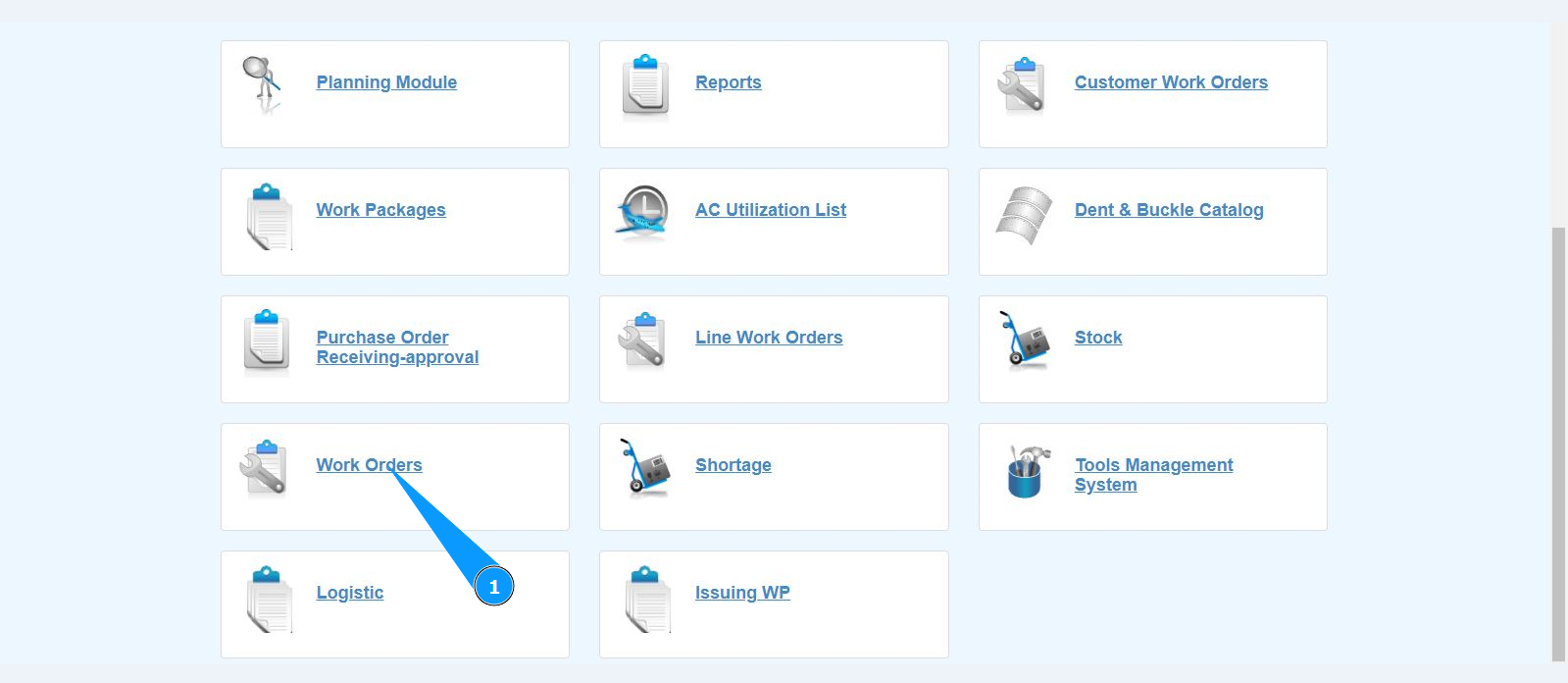 1. In order to create a Work Order, go to the submodule "Work Orders".