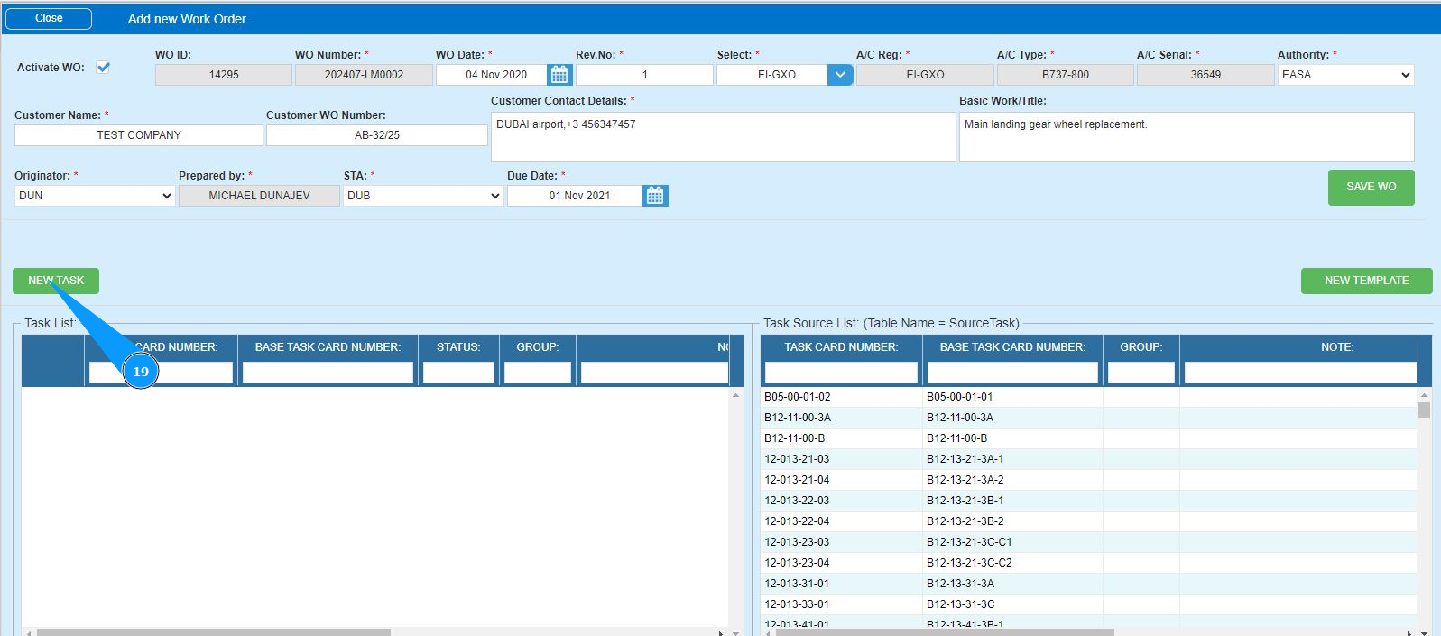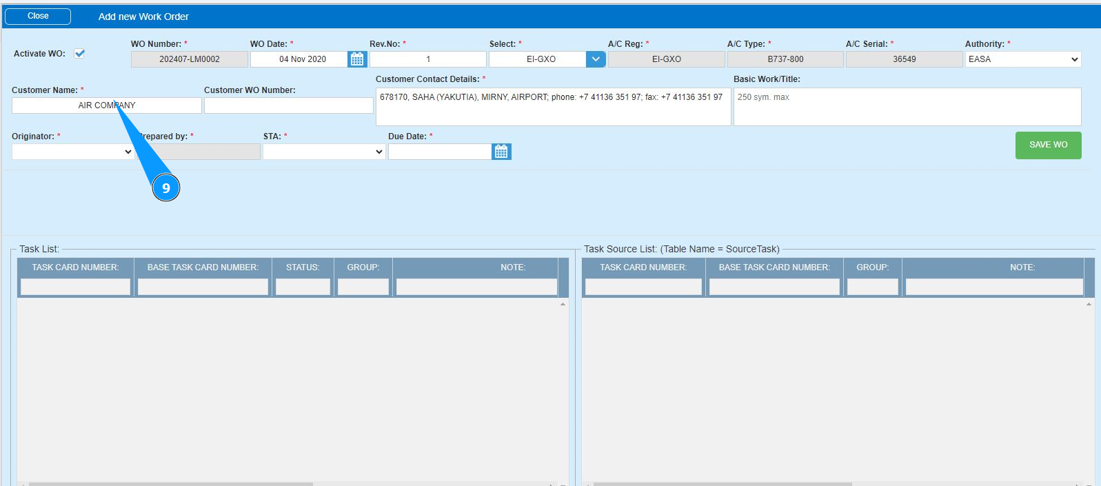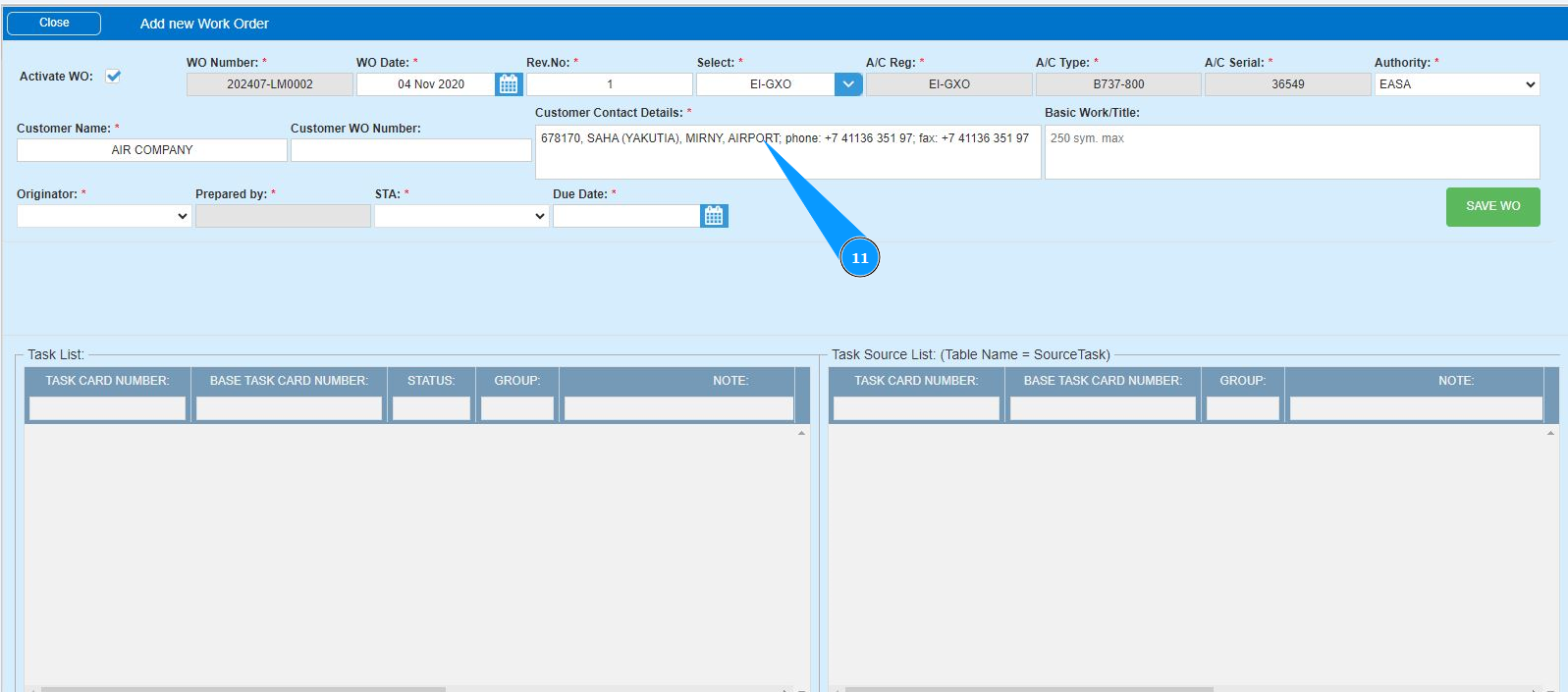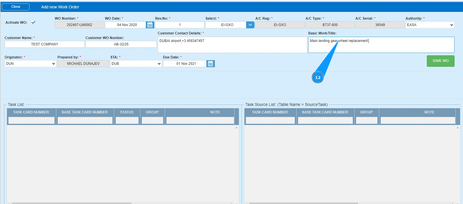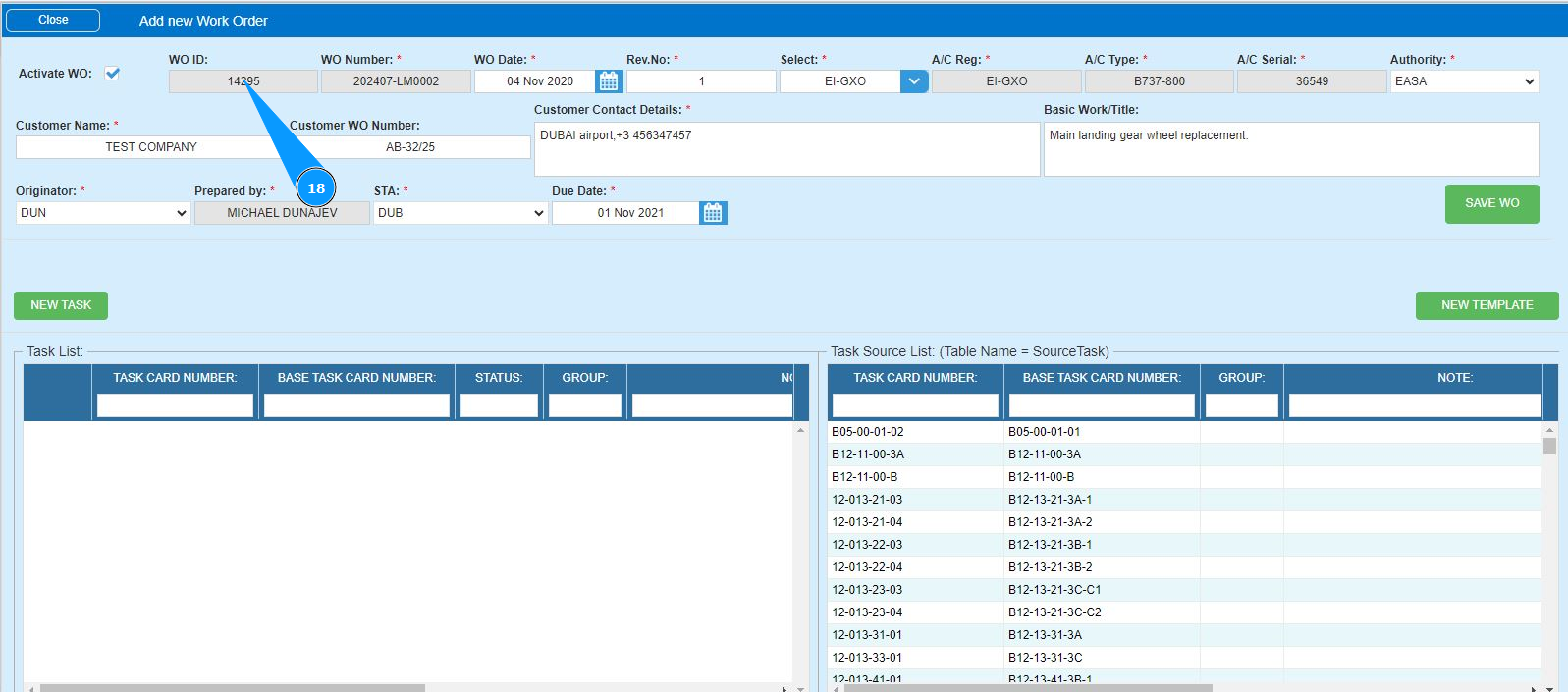 4. Make sure that the WO editor is open and available in the window "Add new Work Order".