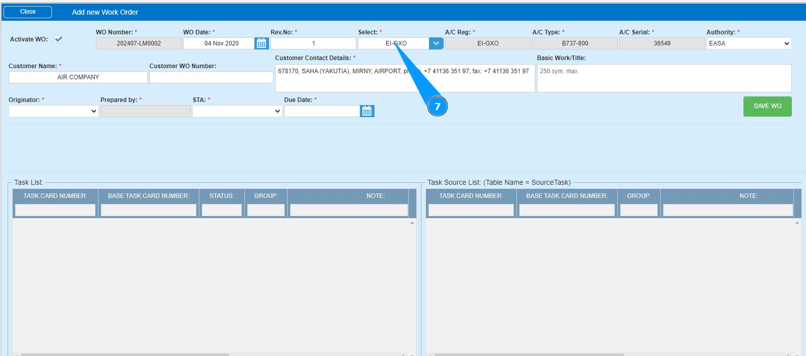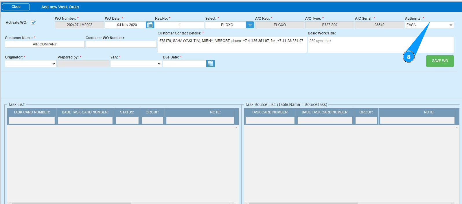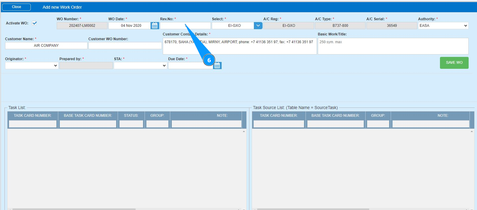 16. Make sure that the WO active state checkbox is ticked in the field "Active WO".