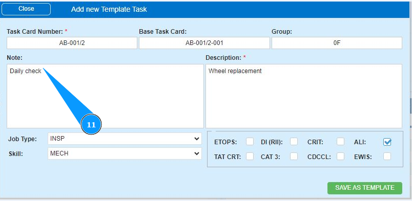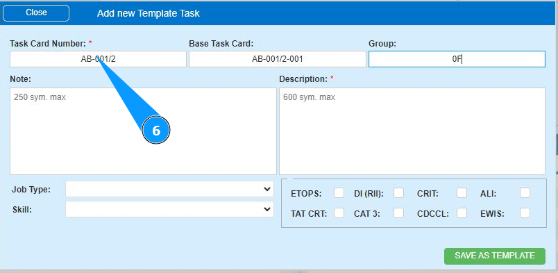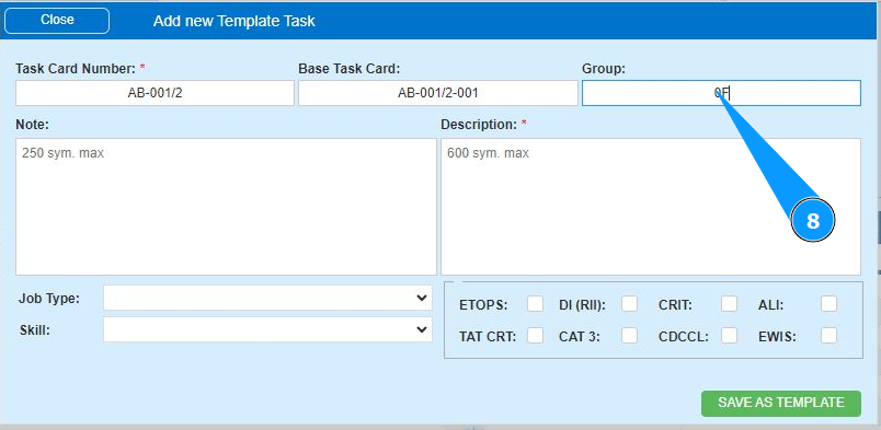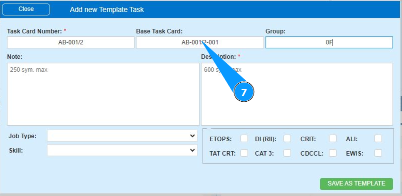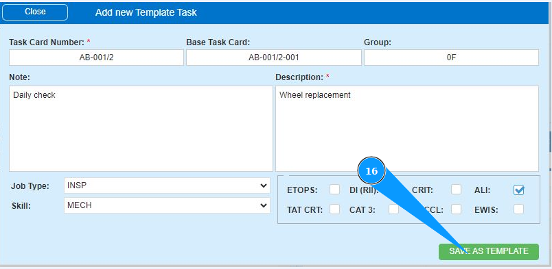 15. If necessary, enter additional criteria for completing the task in the fields: "Etops", "DI(RII)", "CRIT" and so on.