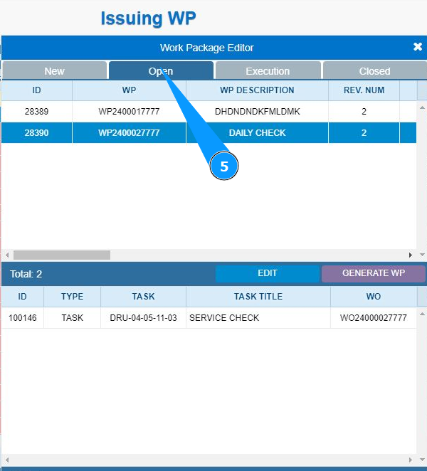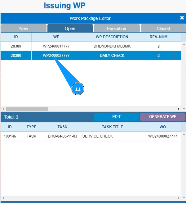 11. Make sure that the Work Package is displayed in the tab "Open".