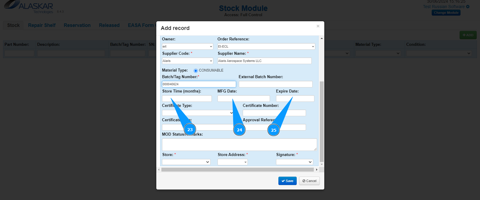25. If necessary, enter the expiration date of the storage period in the field "Expire Date".