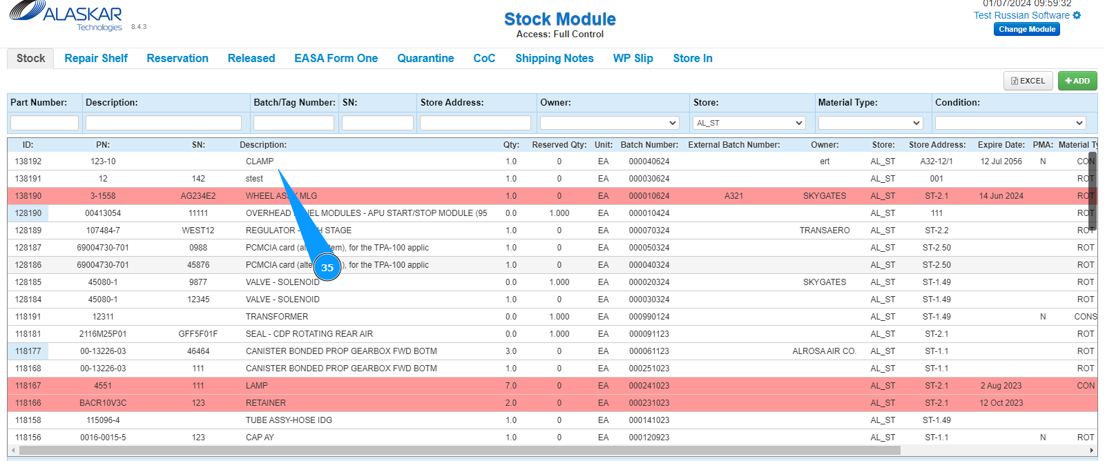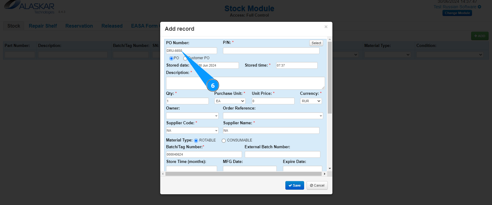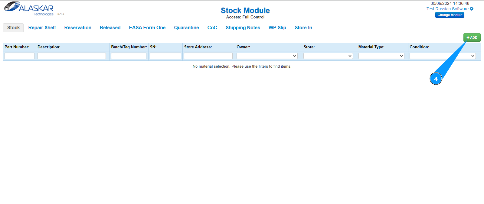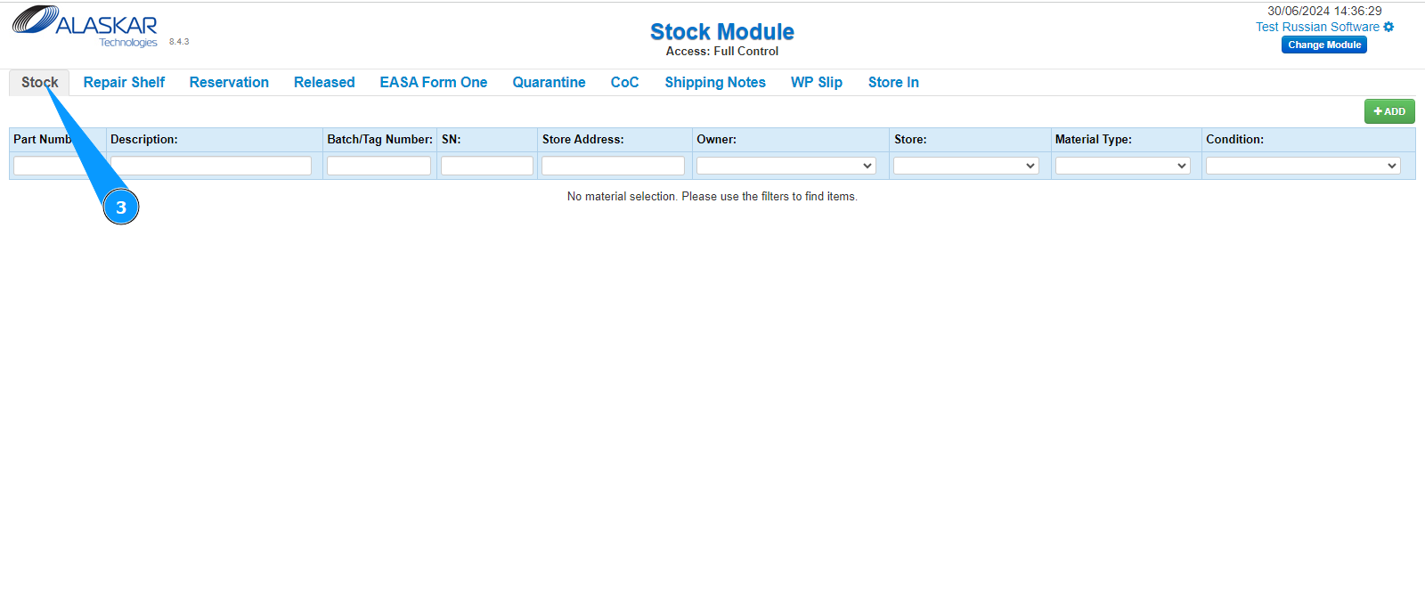 1. In order to receive a component for the store in the Stock submodule, go to the submodule "Stock".
