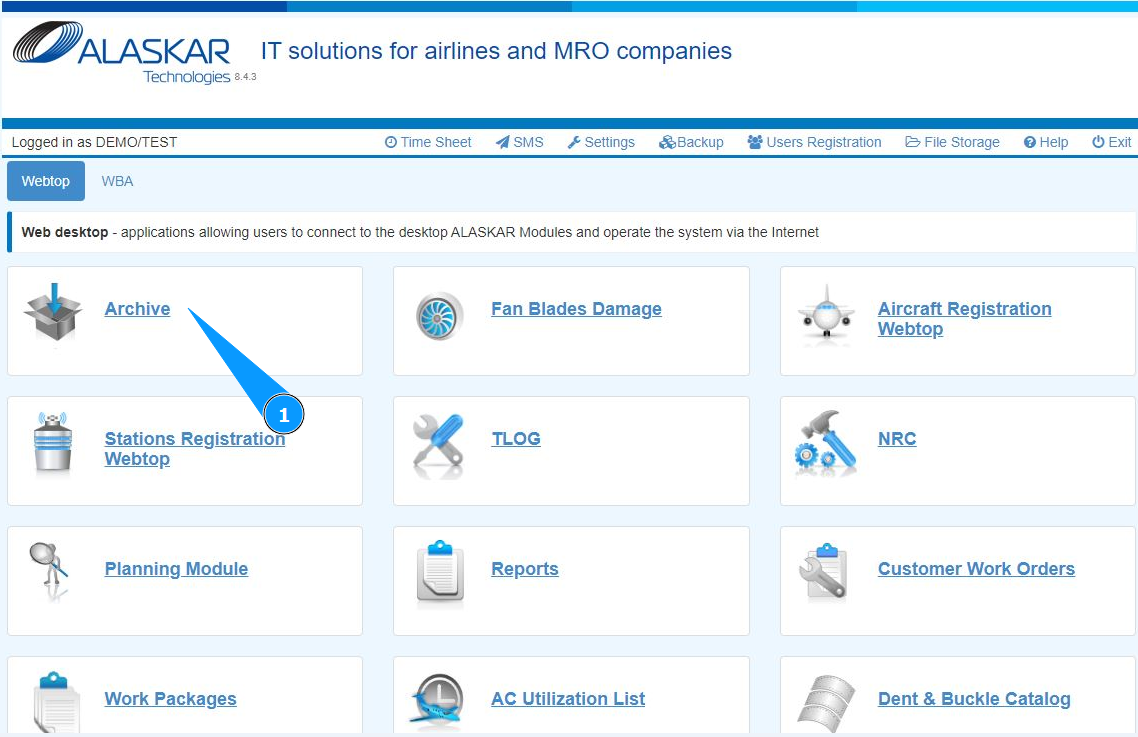 1. In order to save the documents to archive, go to the submodule "Archive".