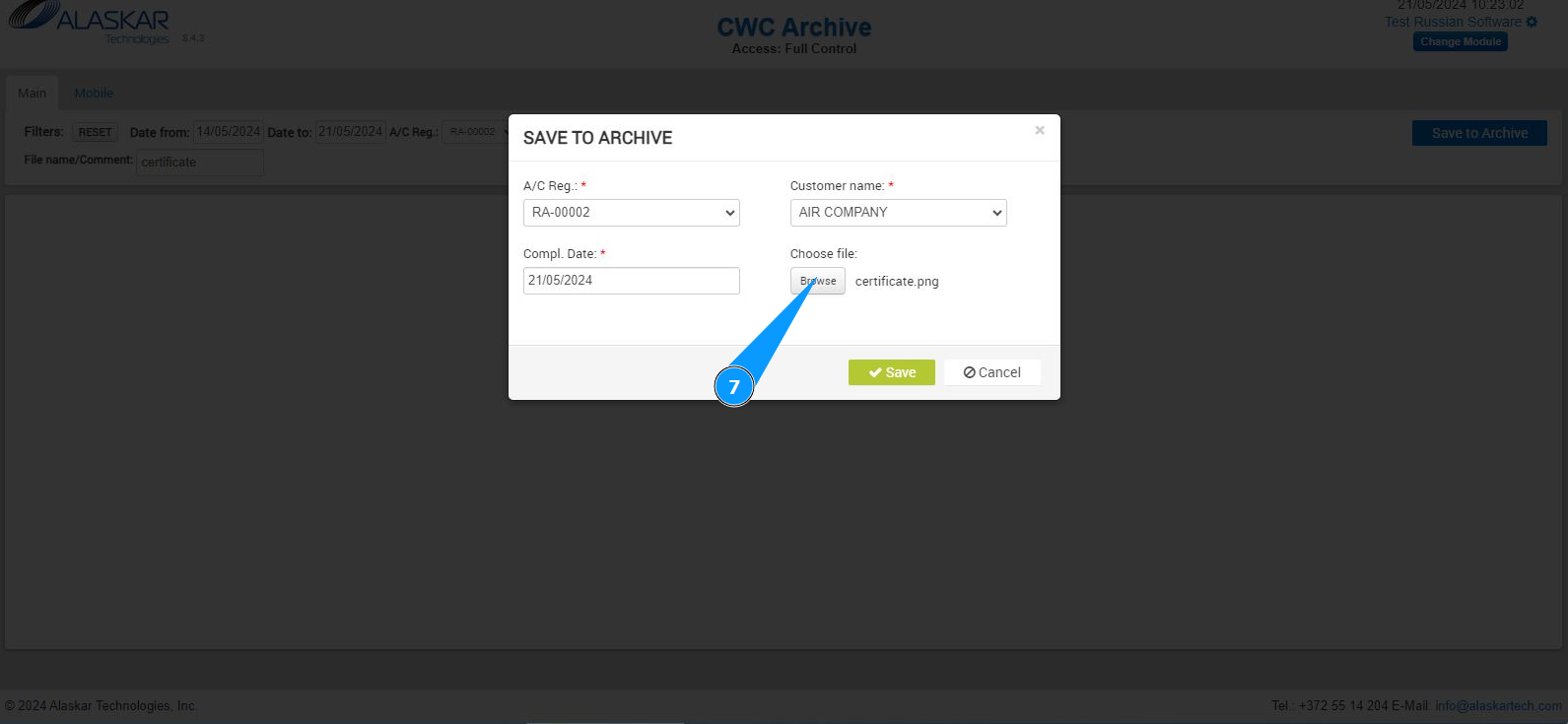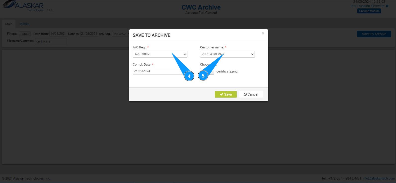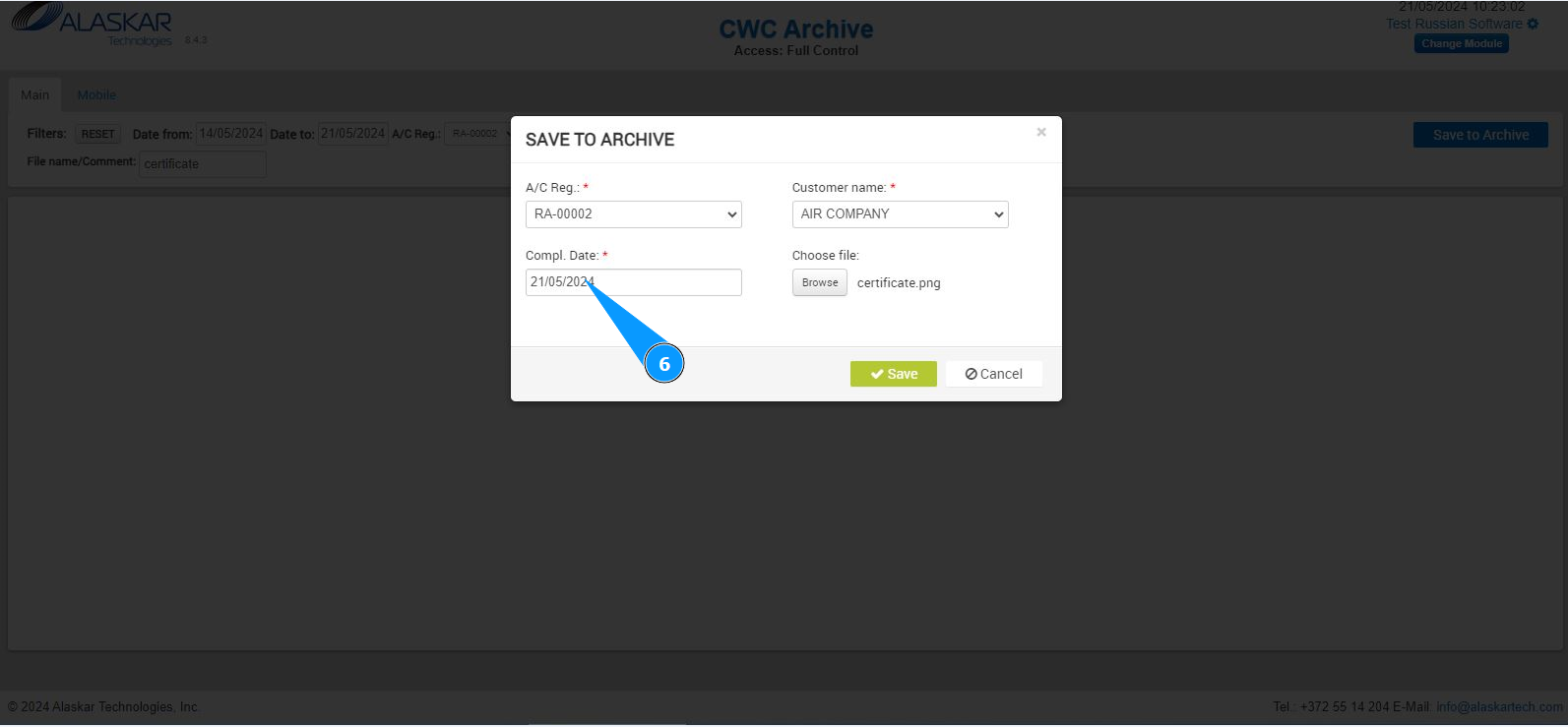 6. Enter the date the archive was added or select manually, click in the field "Compl.Date".