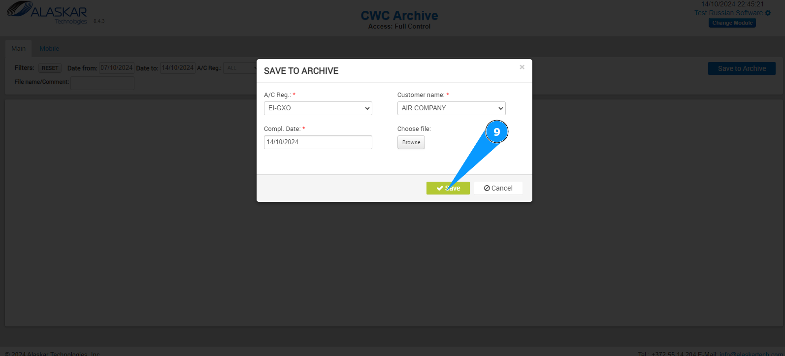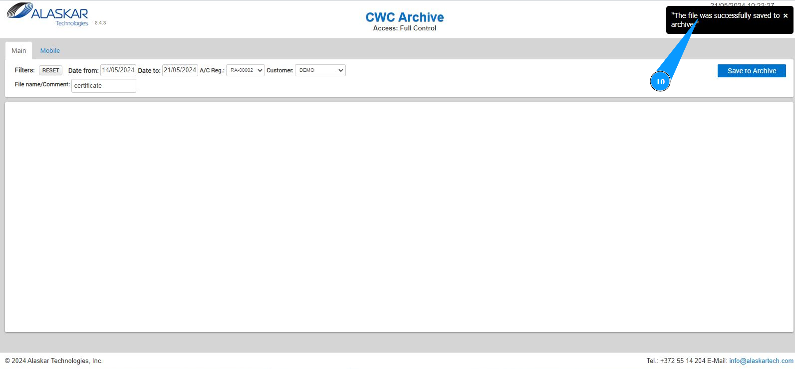 3. Click on the button "Save to Archive", to save your documents to archive.