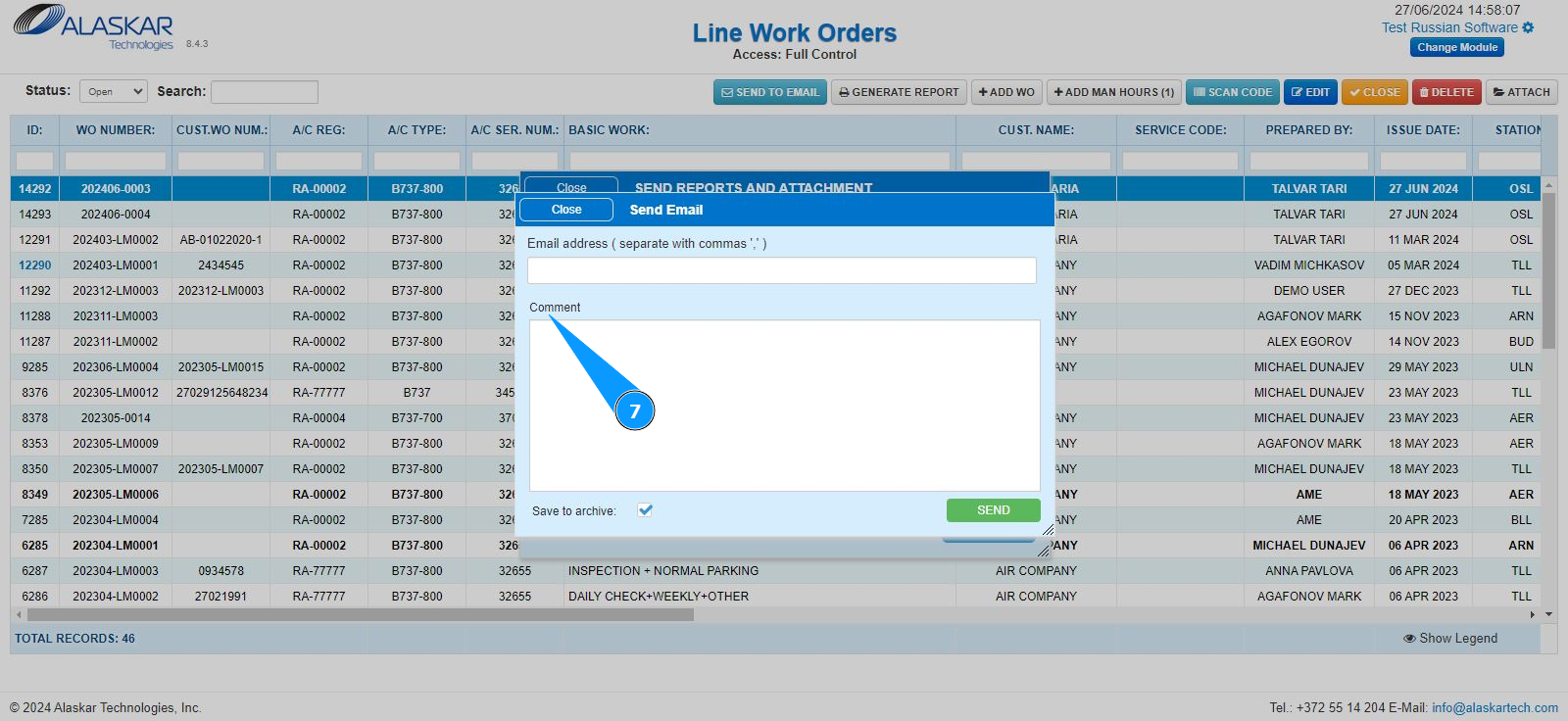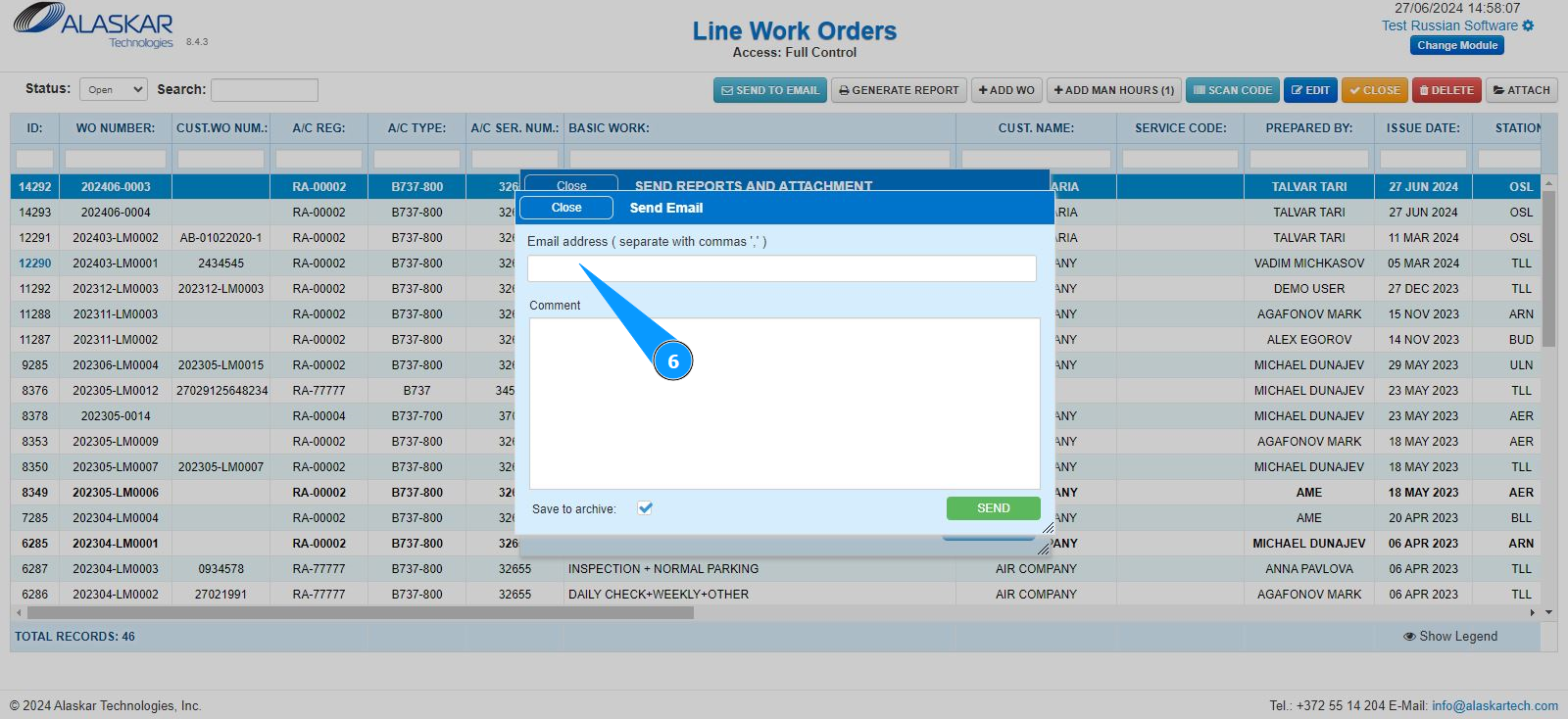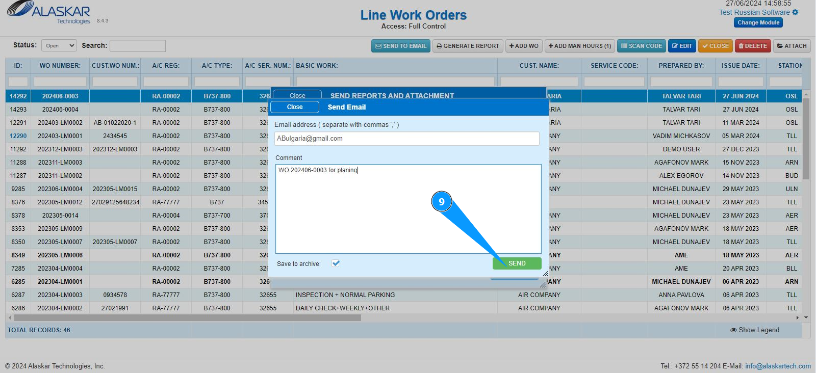 1. In order to send a Line Work Order by mail, go to the submodule "Line Work Orders".