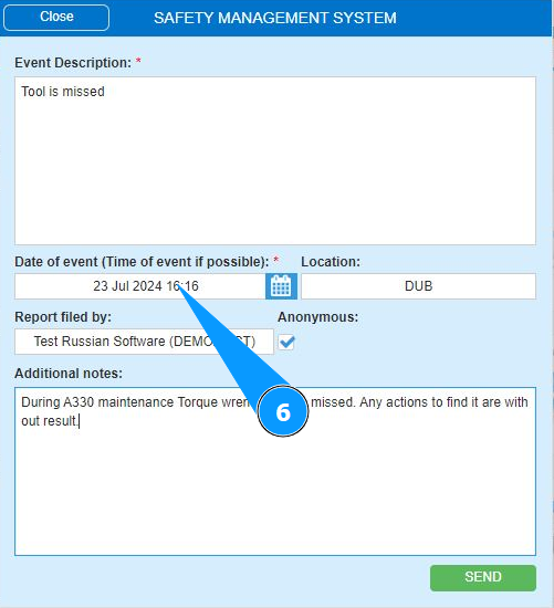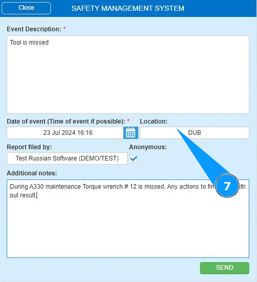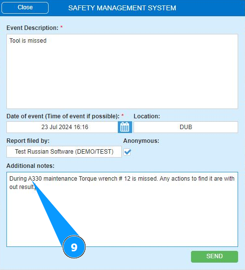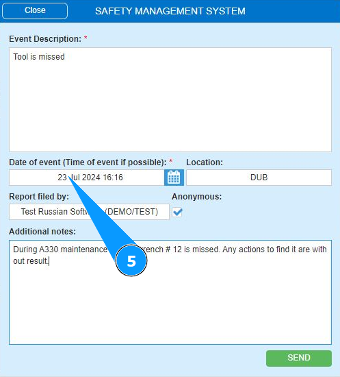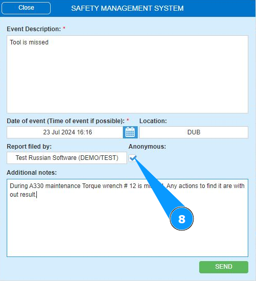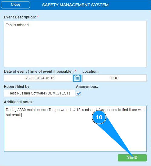 How to send a report of an event of flight safety