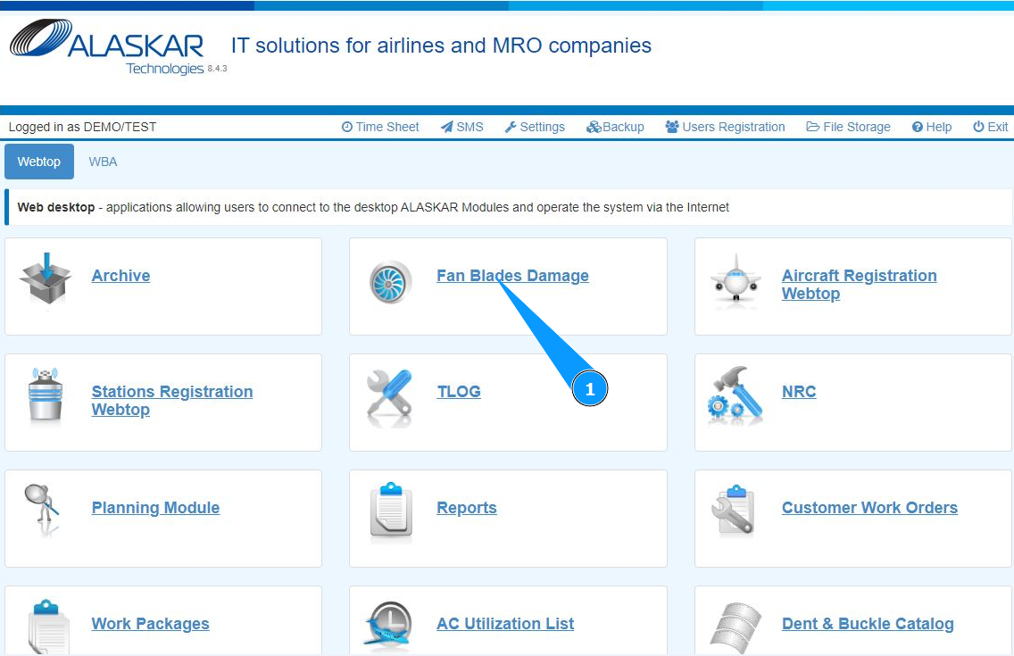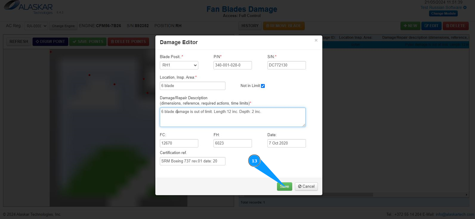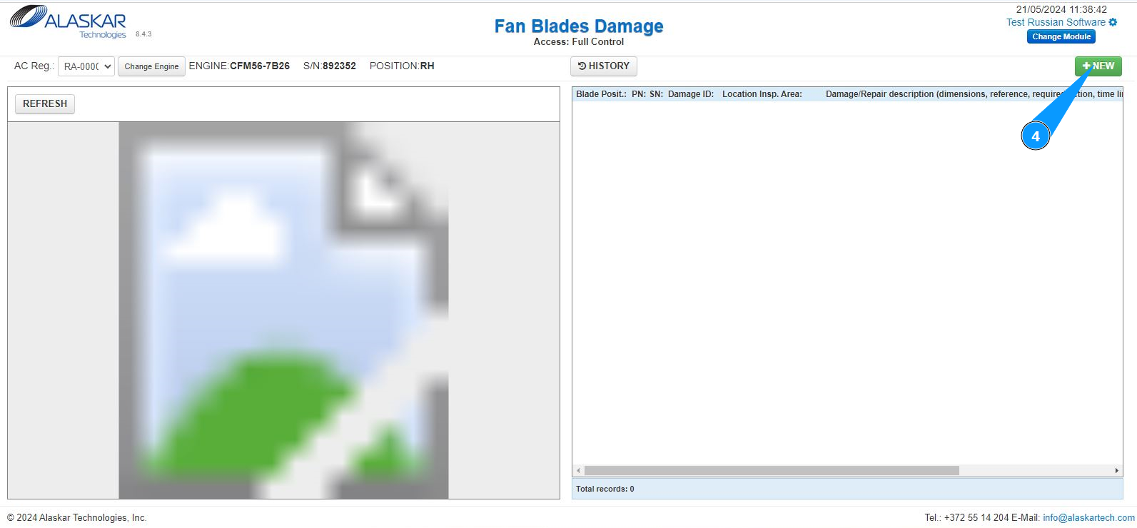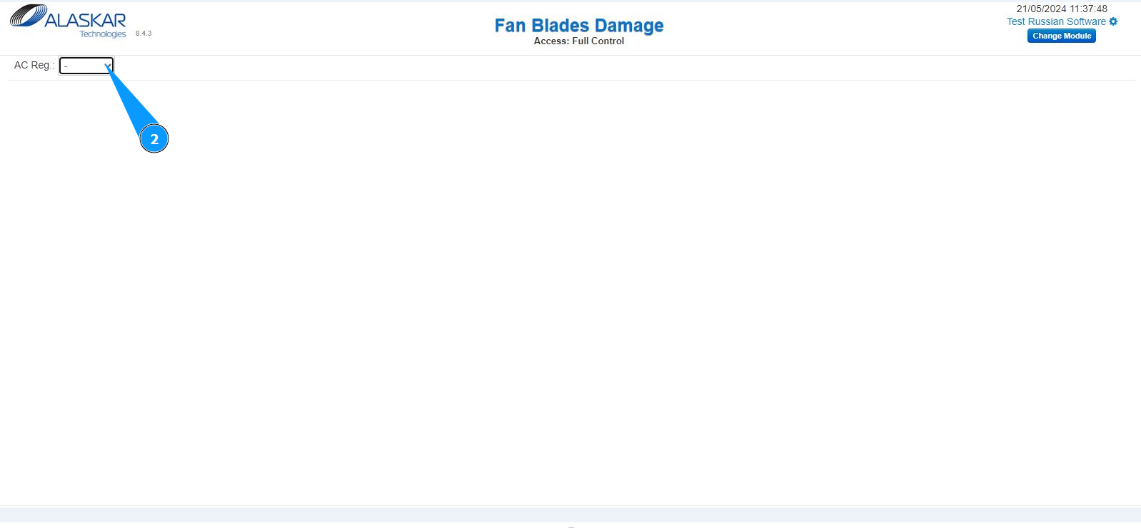 1. In order to enter damages of engine blades, go to the submodule "Fan Blades Damages".