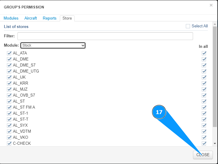 16. Mark the stores to which this group is allowed to access, tick in the corresponding window.