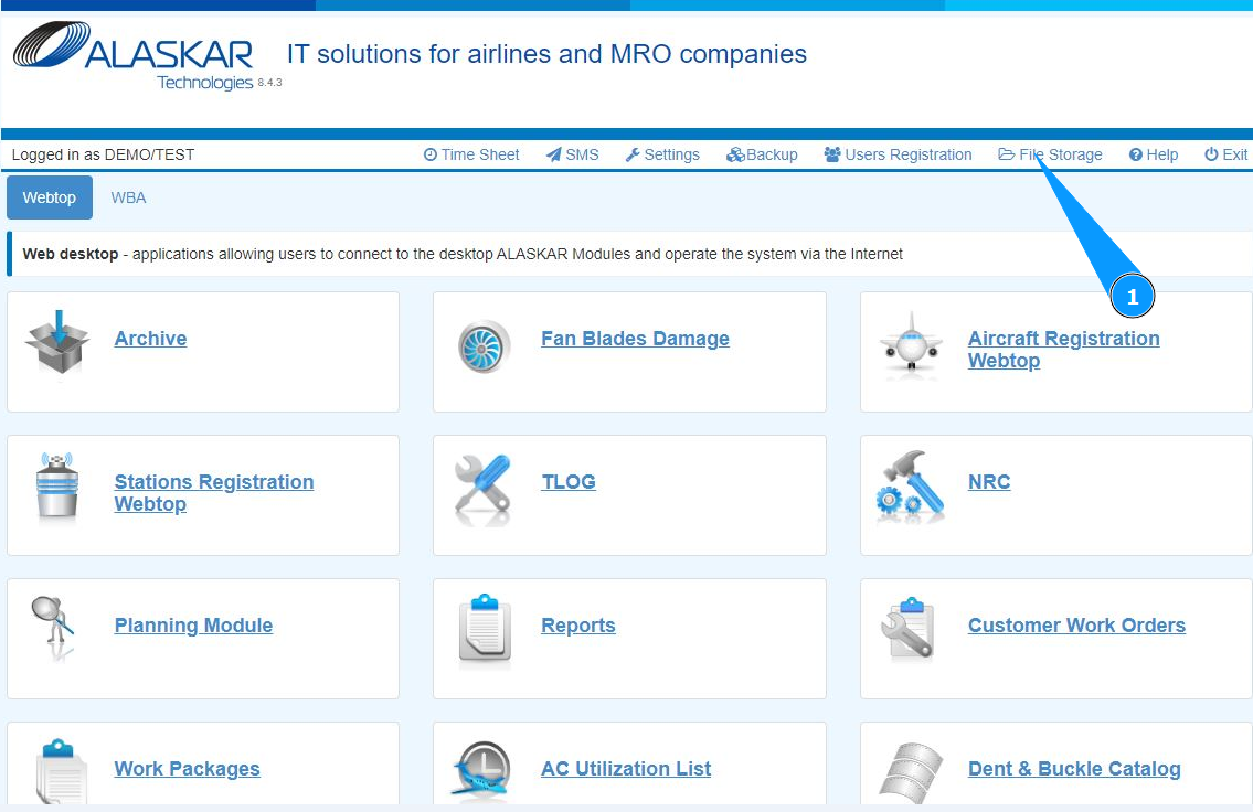 1. In order to work with a file archive, at the top of the open web center, go to the submodule "File Storage".