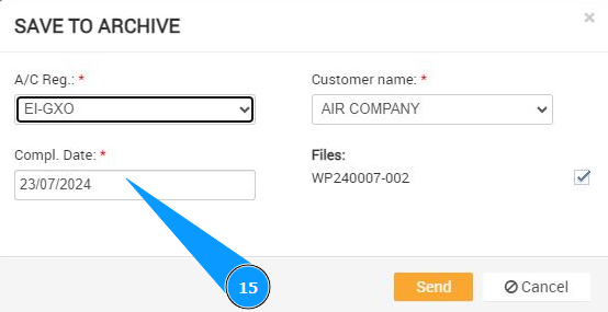 15. Enter the date the file was saved in the archive in the field "Compl. Date".