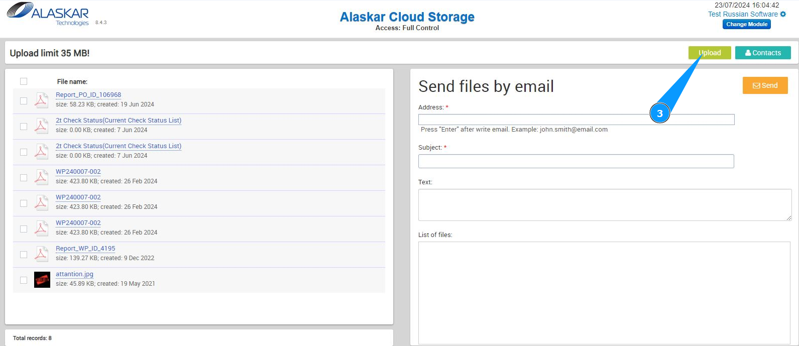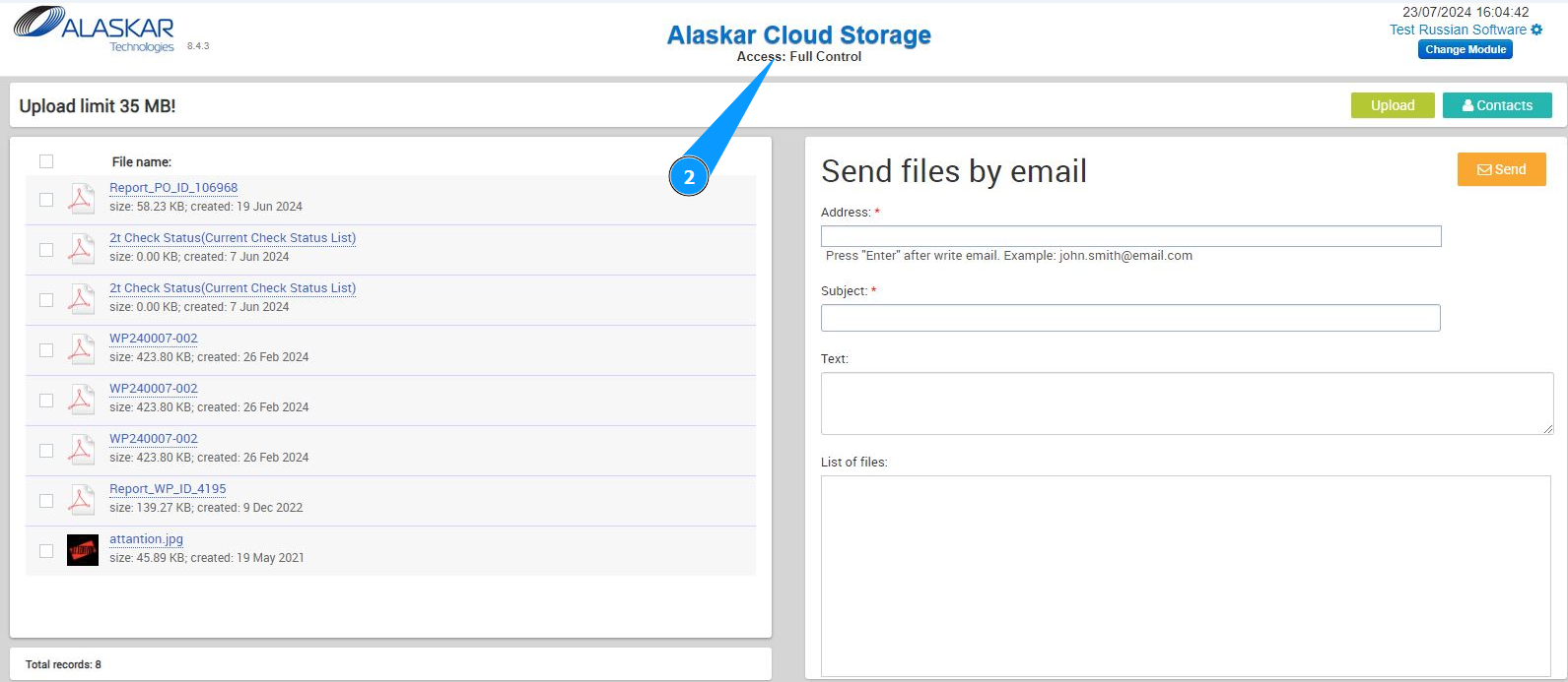 2. Make sure that the window for working with files is open and accessible in the window "Alaskar Cloud Storage".