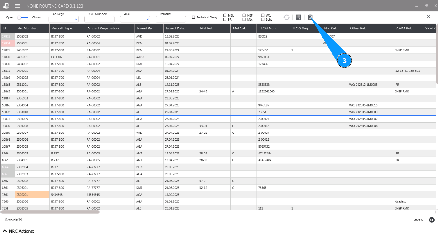 2. Select the NRC from the list to add an action and click on the corresponding line in the window "NRC List".