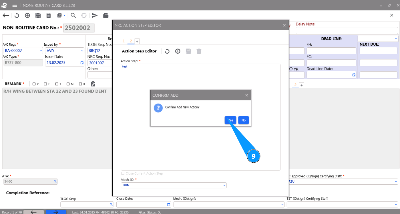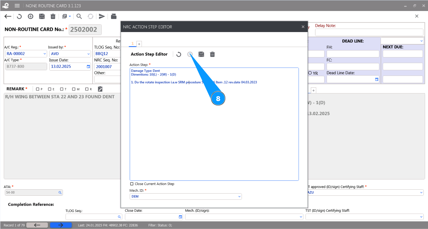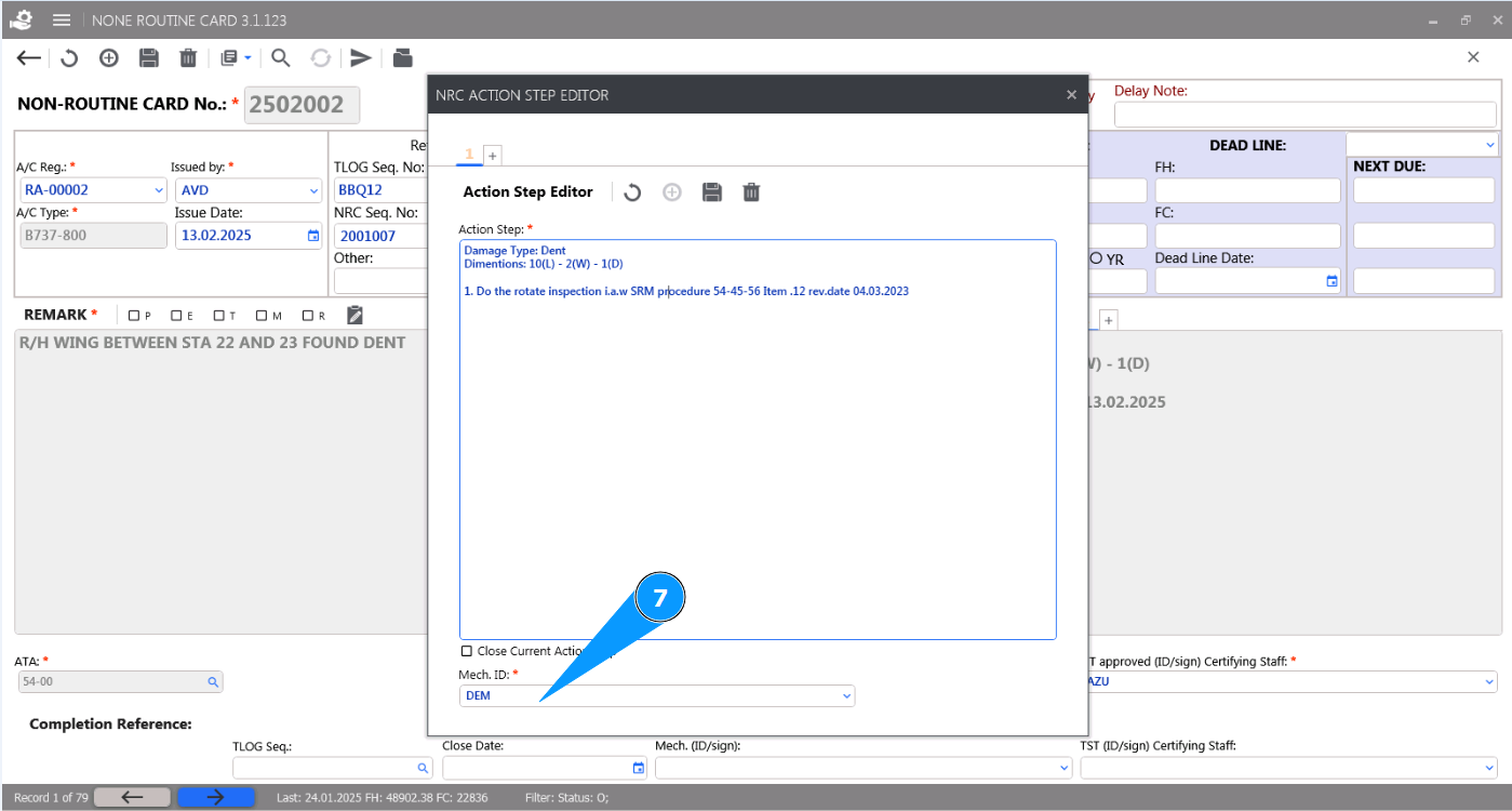 7. Enter the initials of the person completing the NRC (according to your company policy) in the field "Mech ID" or select from the dropdown list.