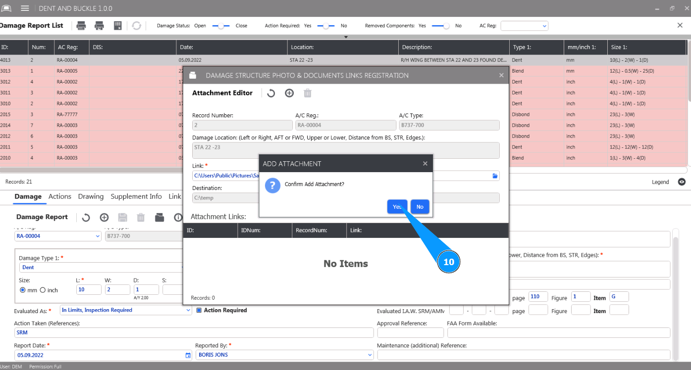 10. Click on the button "Yes" to confirm adding the document to the Repair Order card.