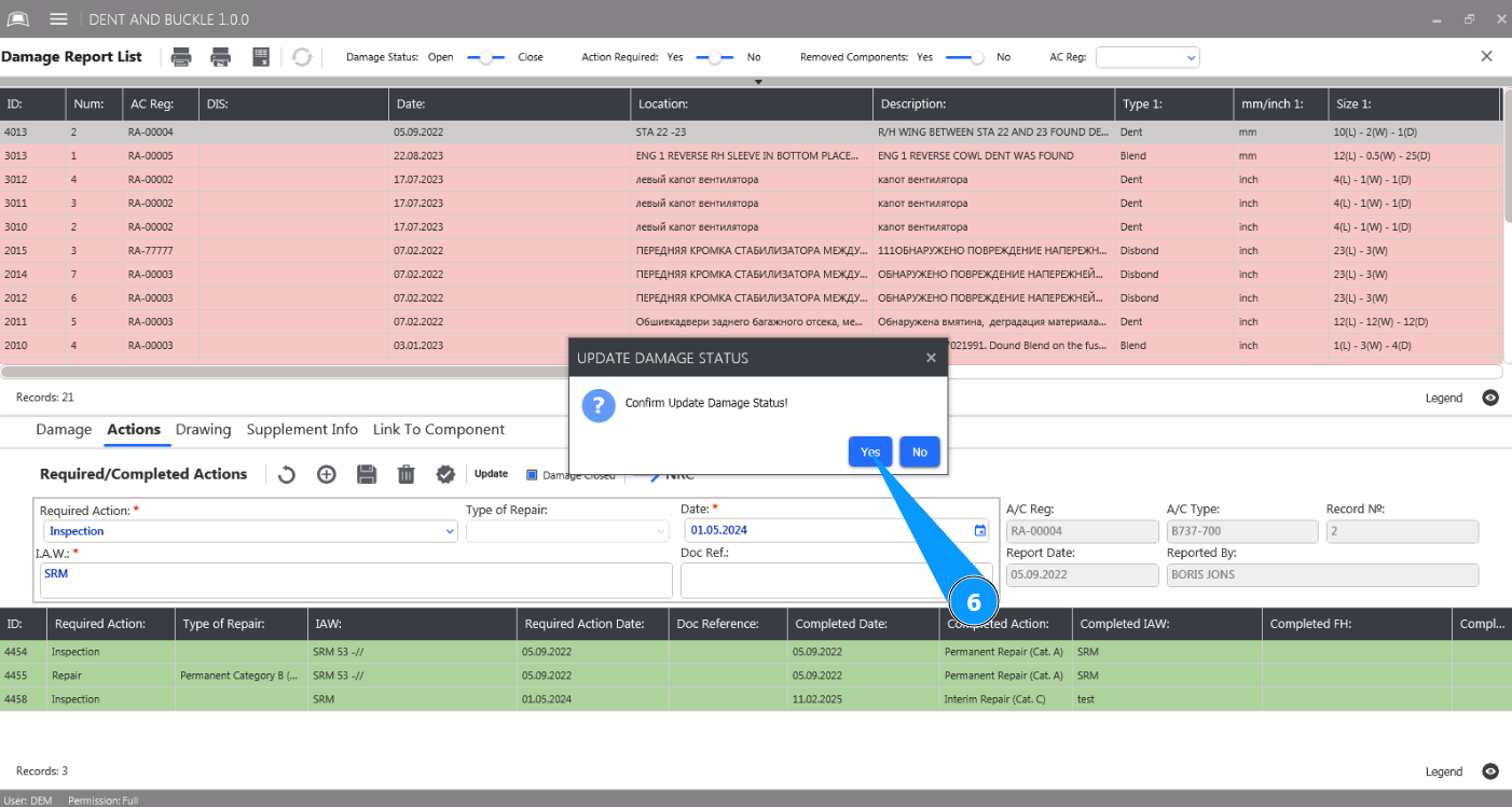 6. Click on the button "Yes" to confirm saving the closed state of the damage to the program.