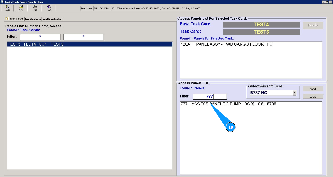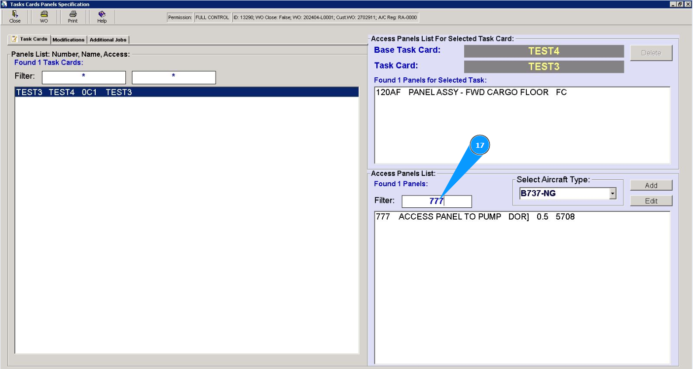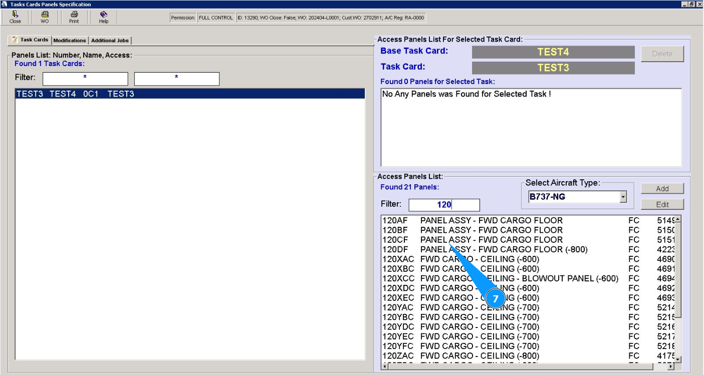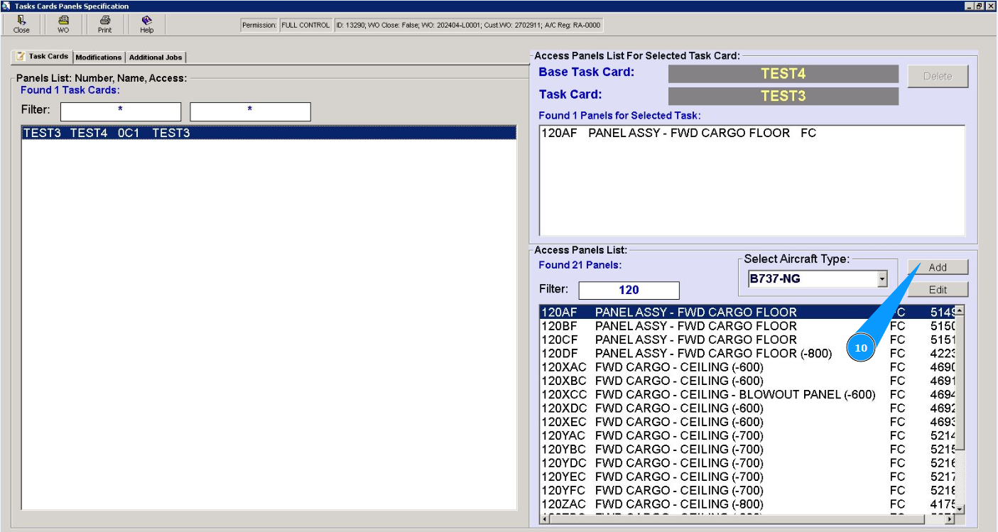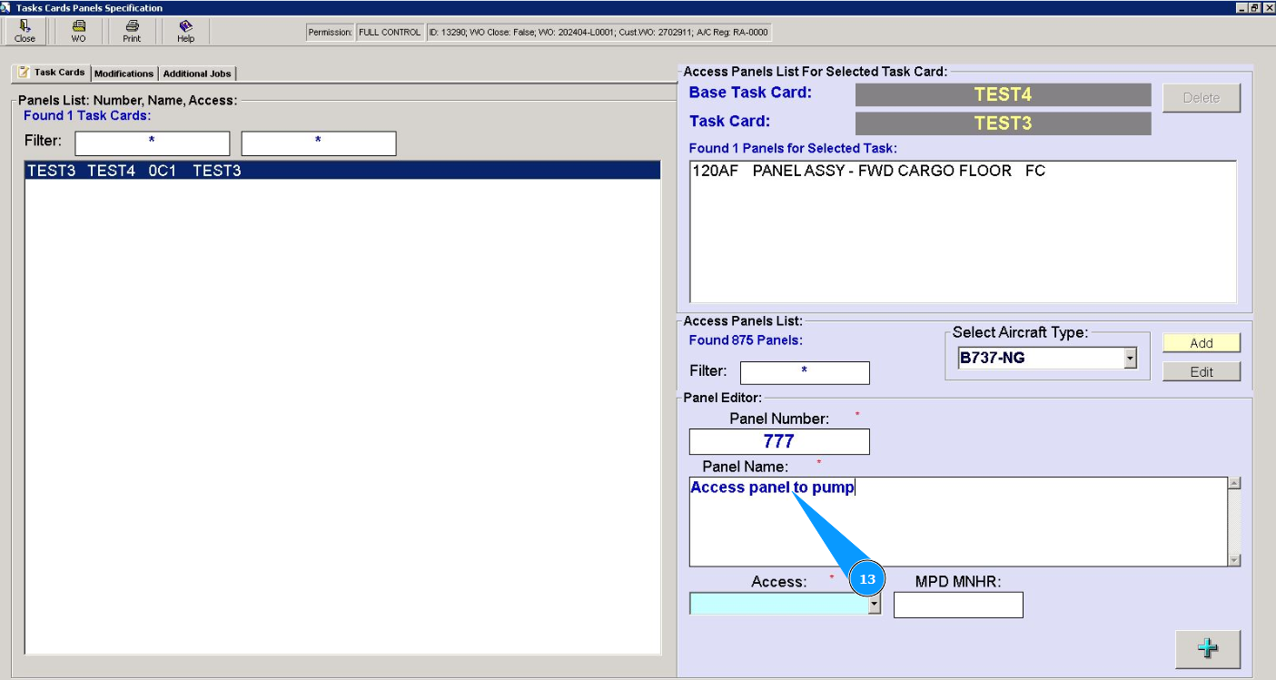 15. Click on the button with the plus symbol to add a new panel to the list of panels. Note: If necessary enter information about the required quantity of man hours to open this panel in the field: "MPD MNHR".