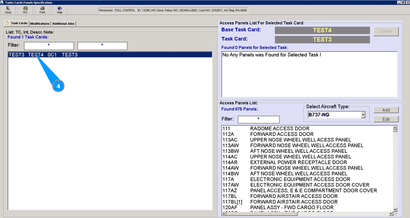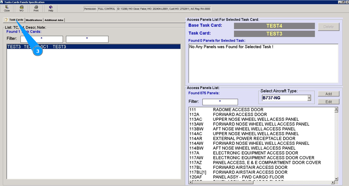 1. In order to add panels to the Work Order task, go to the submodule "TC Panels".