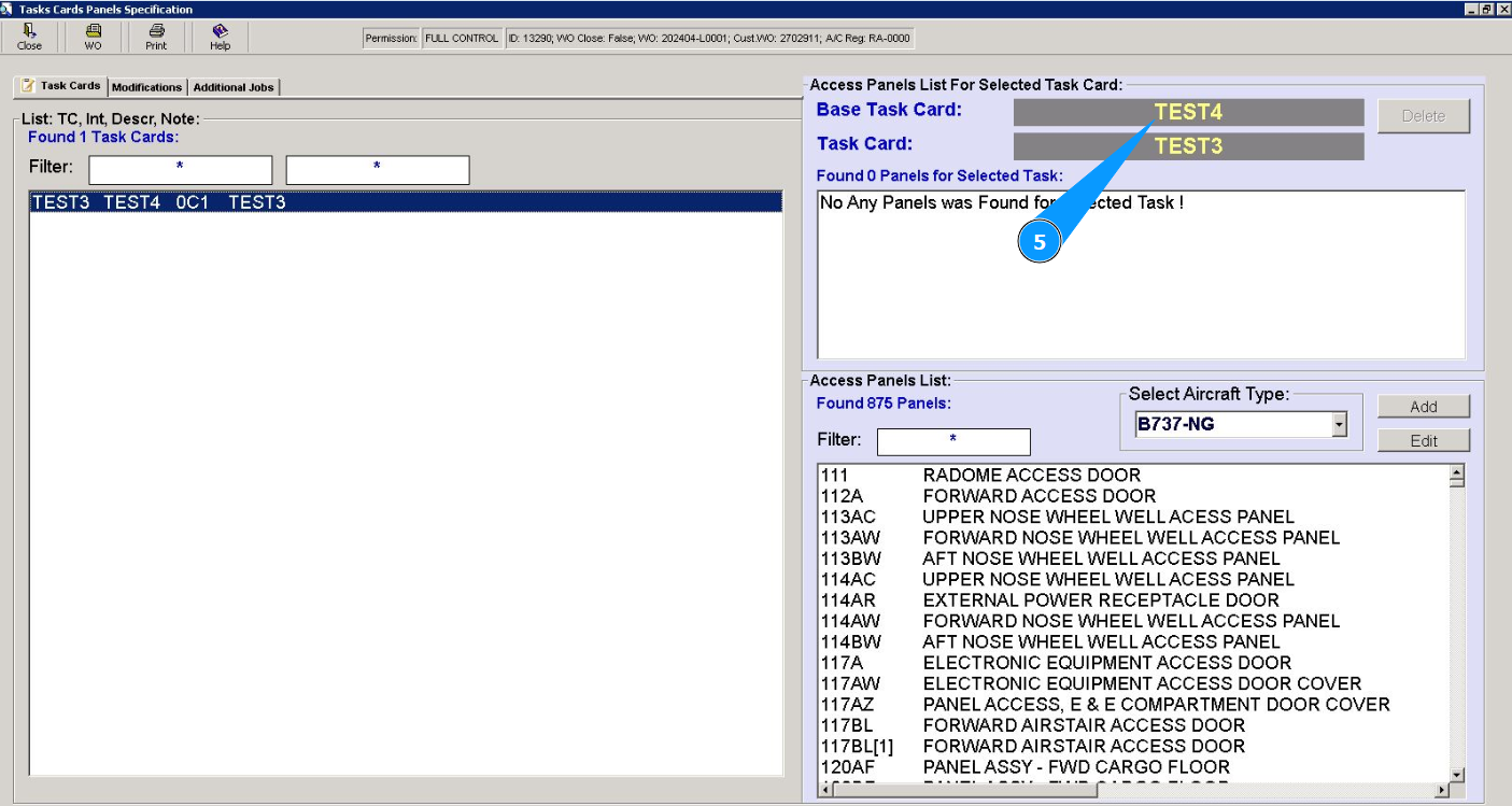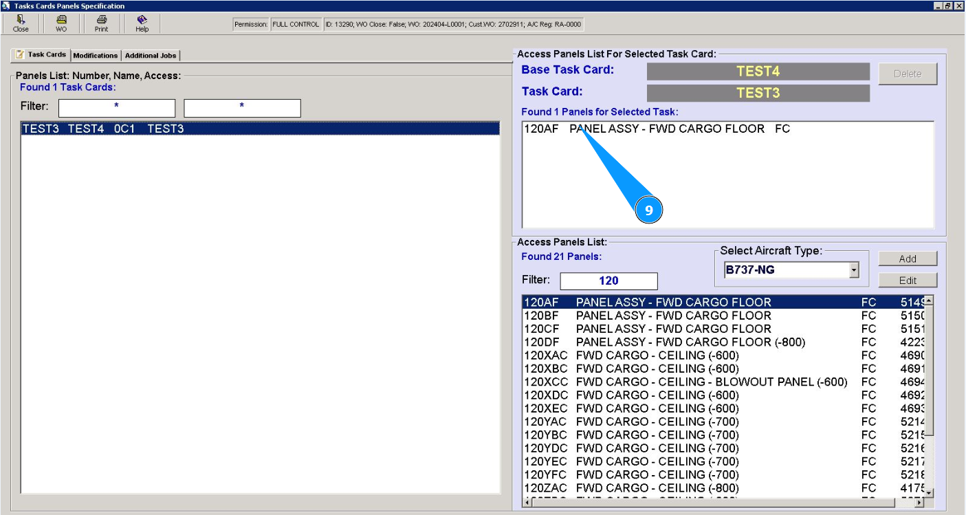 9. Check that the record with the added panel is displayed in the window "Found Panels for Selected Task".