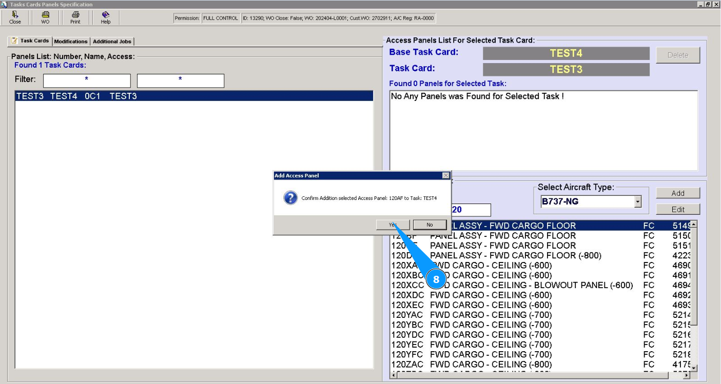 8. Click on the button "Yes", to confirm adding the panel to the task.